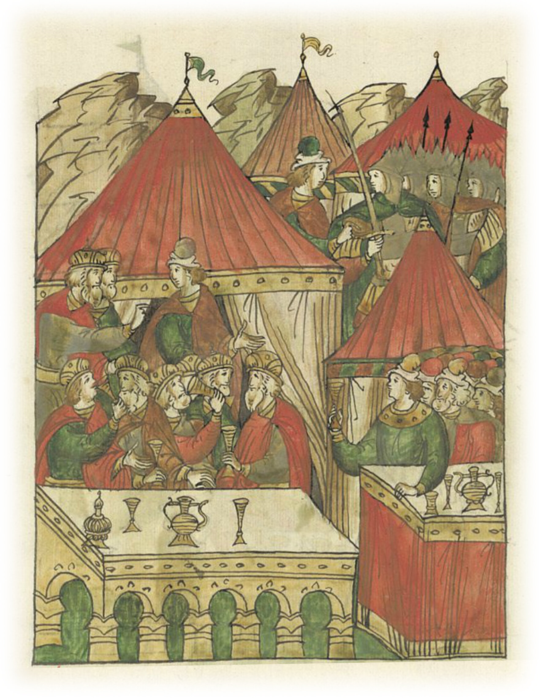 Об окаянном князе Рязанском Глебе, как коварством братьев погубил. В разгар пира князья Глеб и Константин посылают за убийцами в соседний шатер.