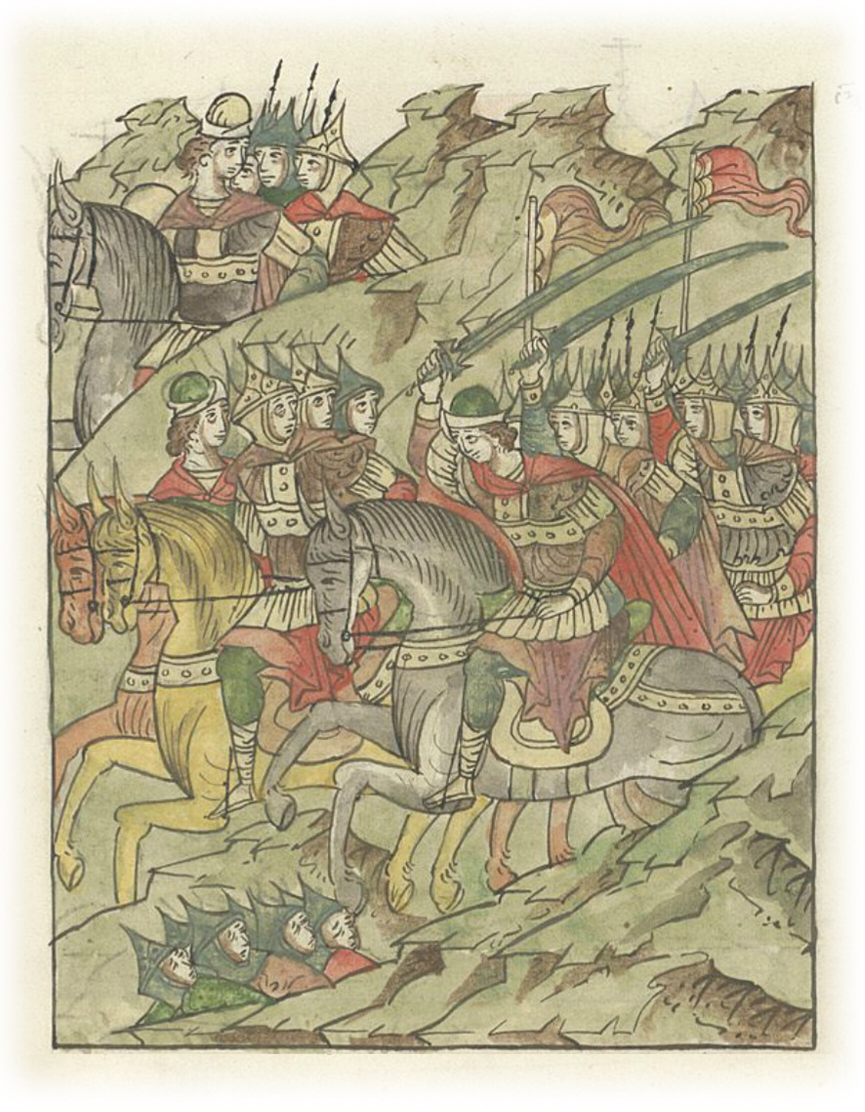 Языки говорят воеводам царя Ивана Васильевича, что магистр окопался большим рвом вокруг города Рындола, бьет из пушек и пищалей и приступает к Рындолу.
