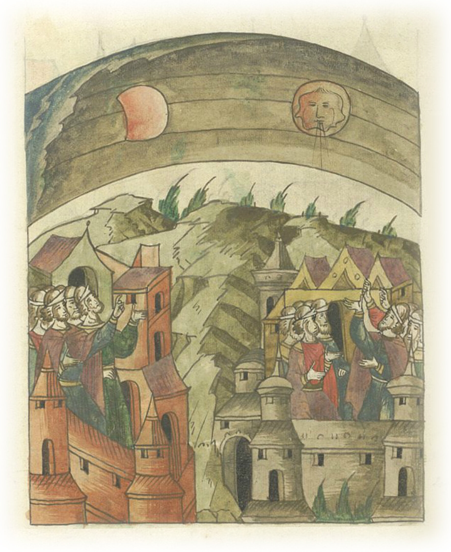 В 6787 (1279) году. Было знамение в луне, и погибла вся, и не было ее долго, и явилась до зори, и светом не наполнилась вся месяца февраля 24-го дня. Той же зимой было знамение в солнце.