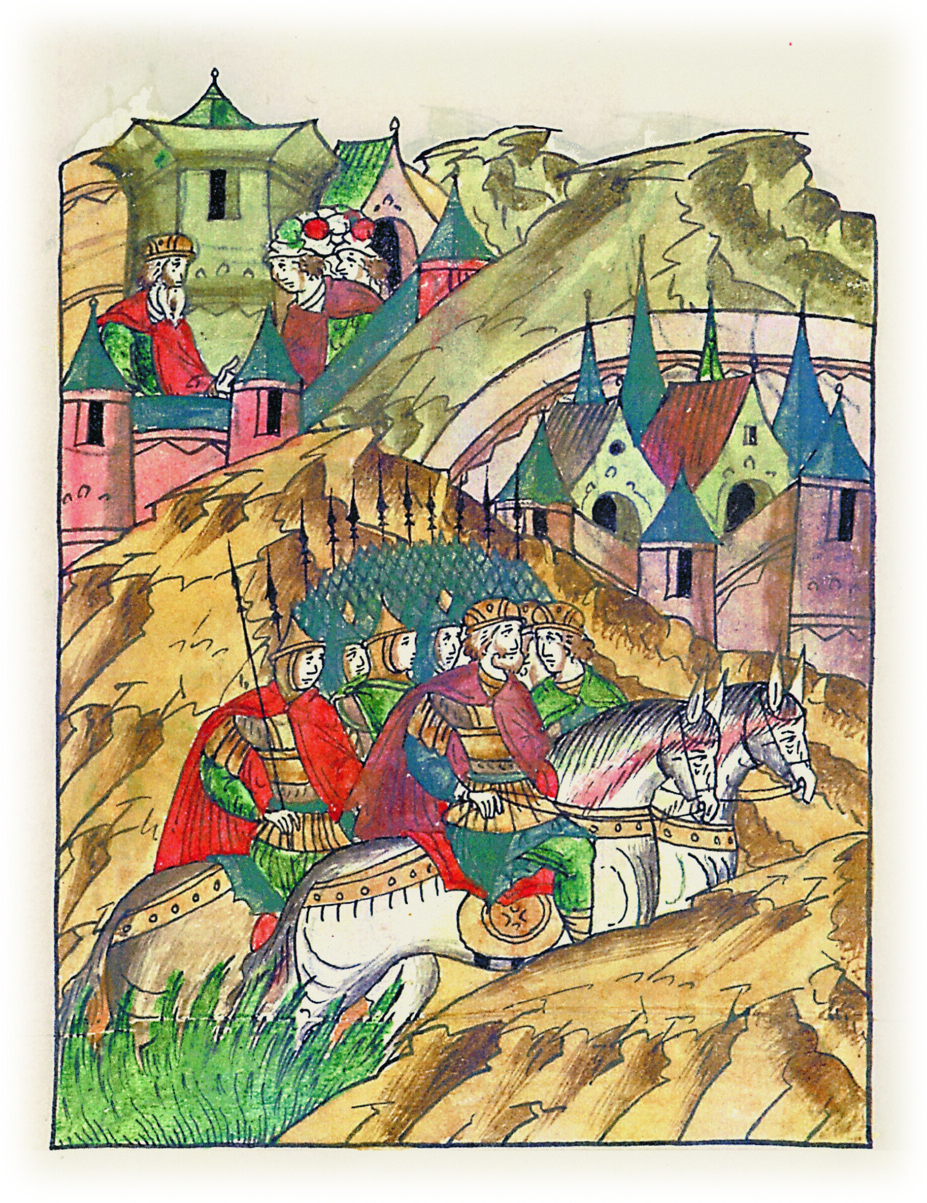 И услышав это, отец его, Изяслав Мстиславич, князь великий Киевский, пошел на князя Юрия Долгорукого к Городку, а с ним князь великий Черниговский Изяслав Давидович, и князь Святослав Всеволодович, и воевода с силою Святослава Олеговича и берендеями; и пришли к Городку.