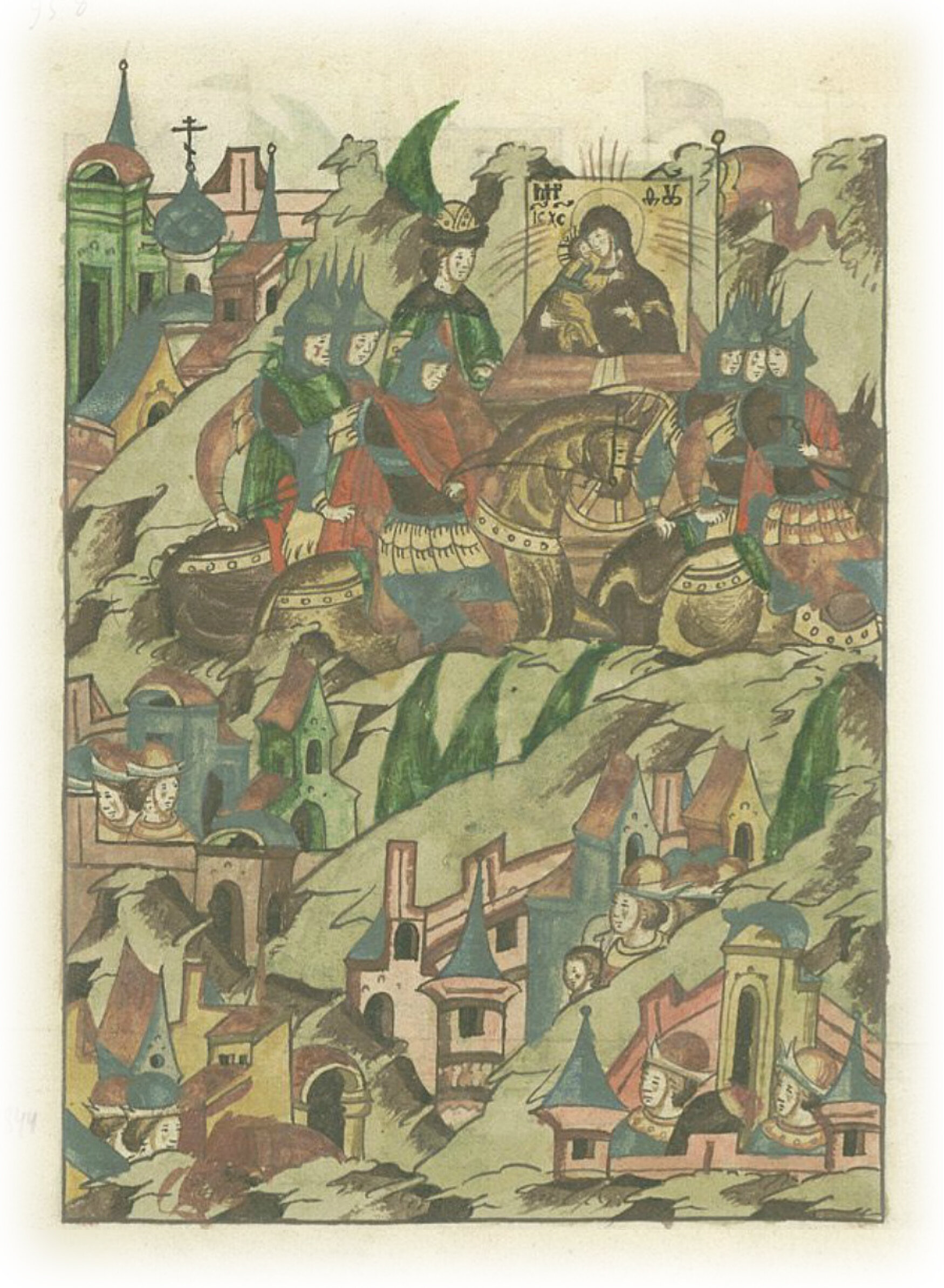 И все видели, как от иконы Спаса Исуса Христа и пречистой Его Матери исходили божественные огненные лучи, которые прикрыли все воинство великого князя. И поняли все, что это божья помощь,