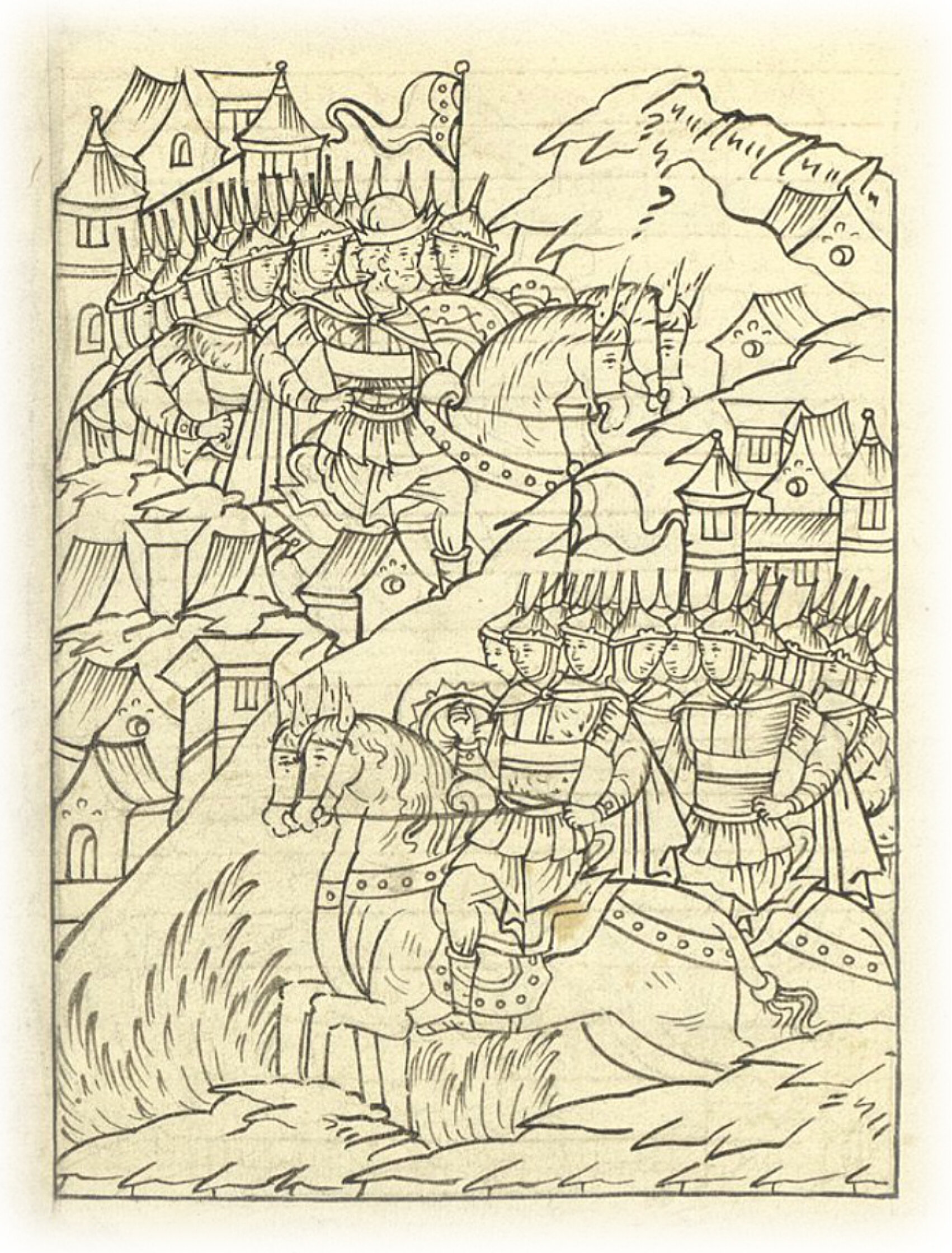 Языки говорят воеводам царя Ивана Васильевича, что магистр окопался большим рвом вокруг города Рындола, бьет из пушек и пищалей и приступает к Рындолу.