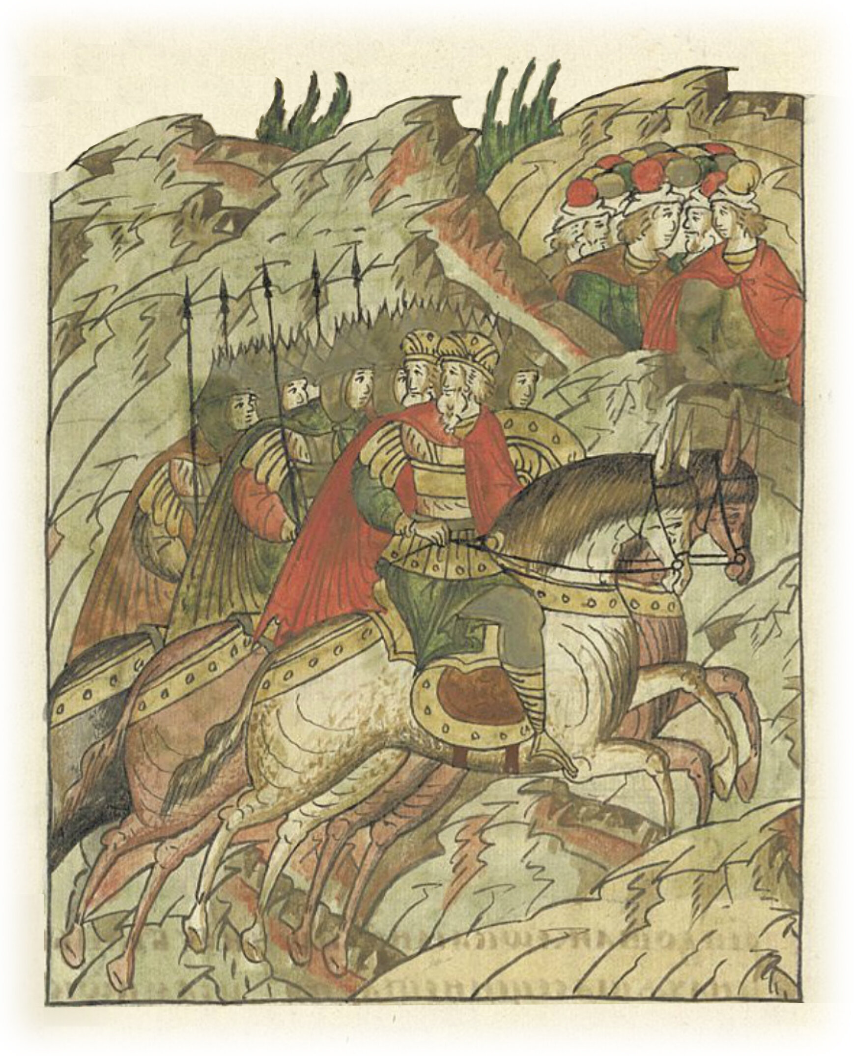 Воеводы царя Ивана Васильевича, разделившись, идут в погоню за царем Емгурчеем.