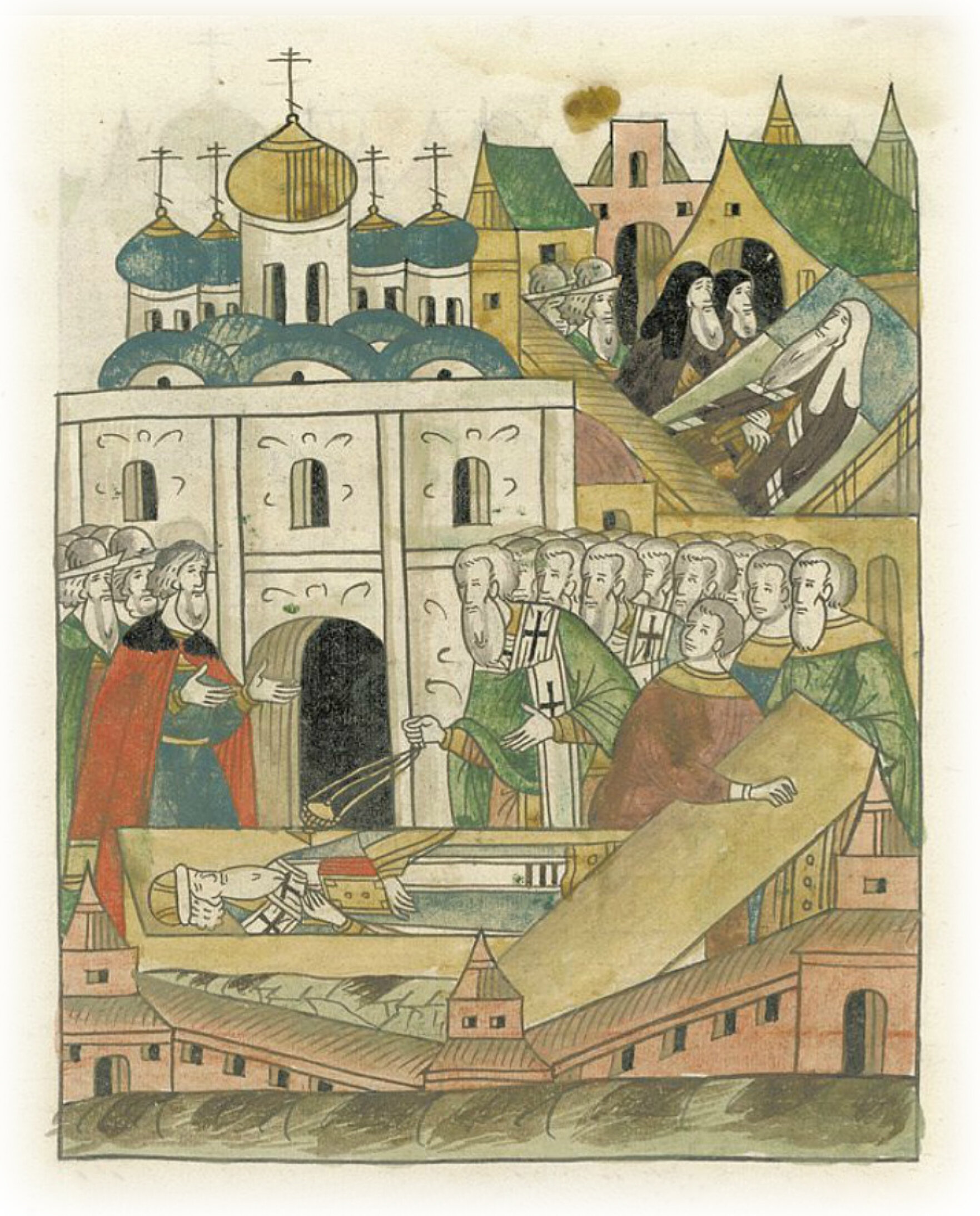 Кончина митрополита всея Руси Симона и его похороны в церкви Успения Пречистой Богородицы в Москве.