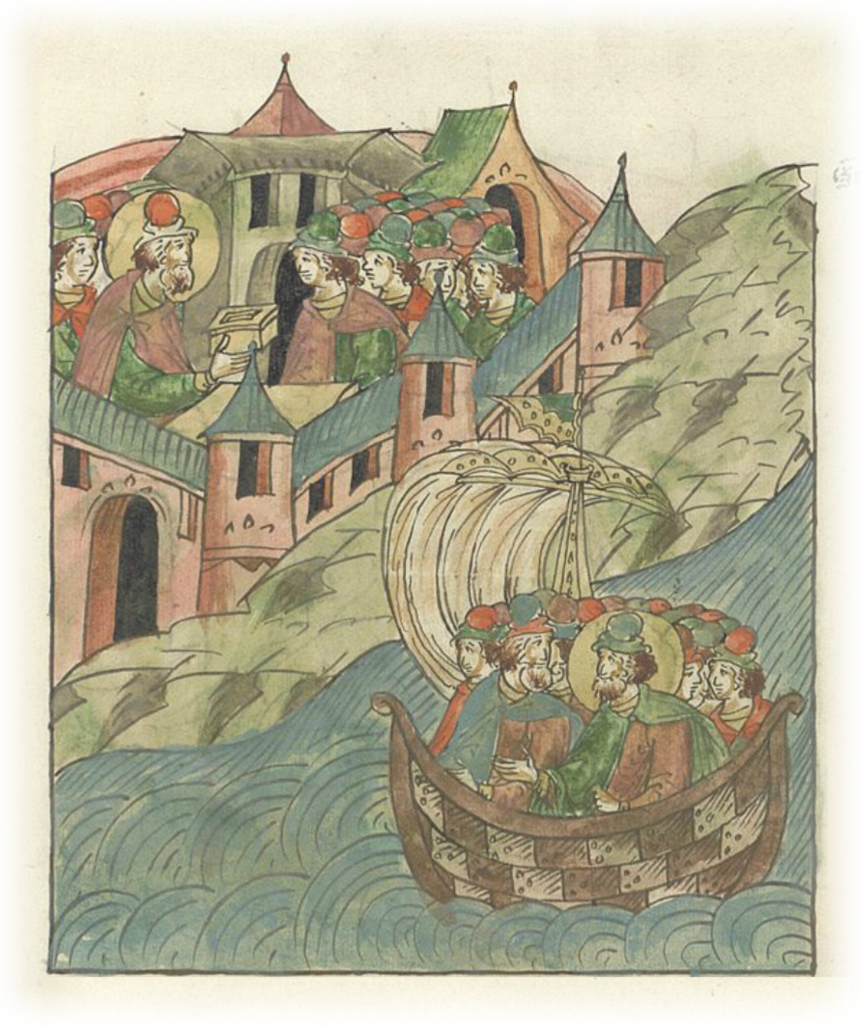 Об Аврамии мученике. В том же году убили болгары некоего христианина за православную веру в Великом граде их. Был же он из иного народа, не русского, но христианином был, богатство же имел большое и торговлю вел по землям. Пришел же по Волге в ладье в город Великий Болгарский.