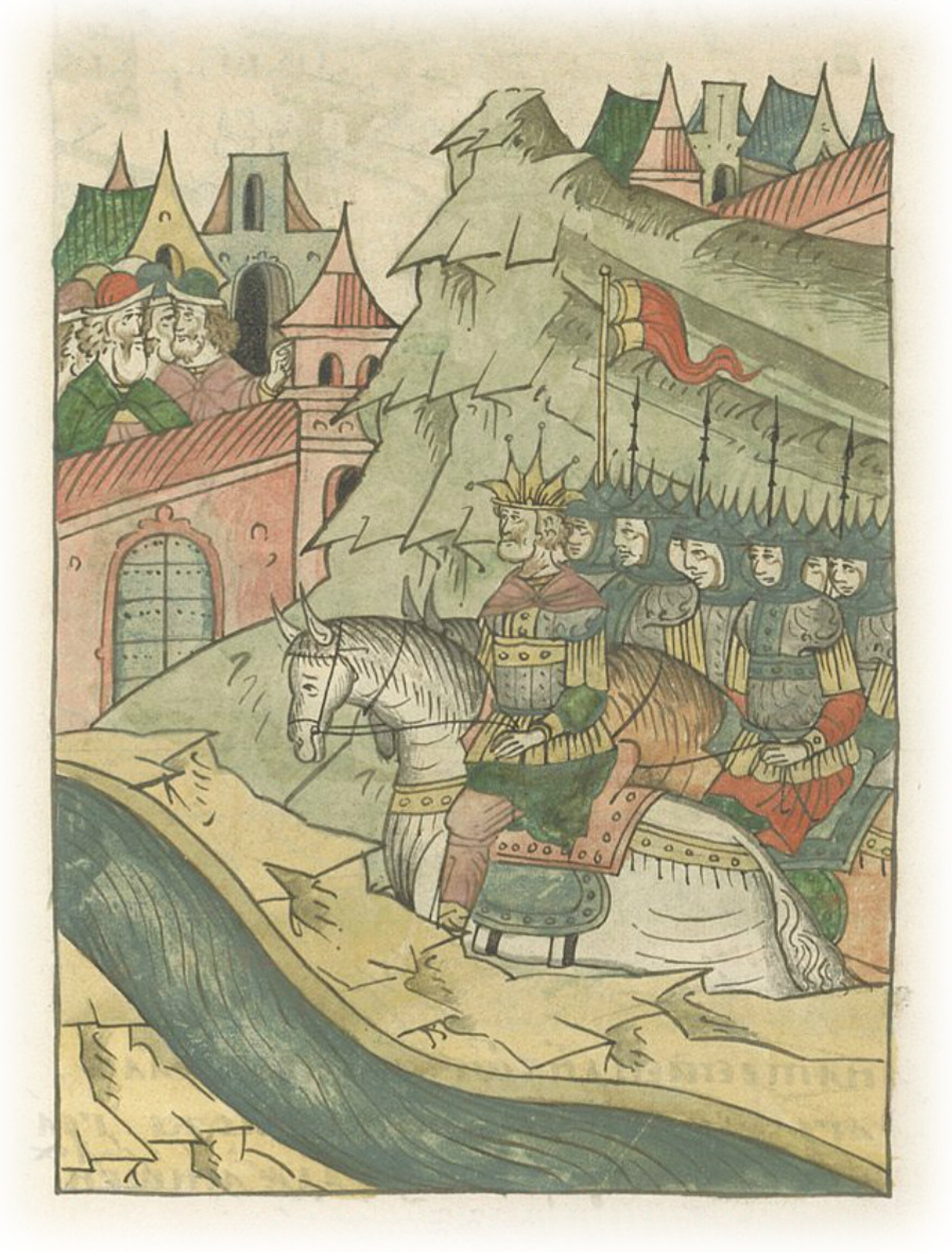 Языки говорят воеводам царя Ивана Васильевича, что магистр окопался большим рвом вокруг города Рындола, бьет из пушек и пищалей и приступает к Рындолу.