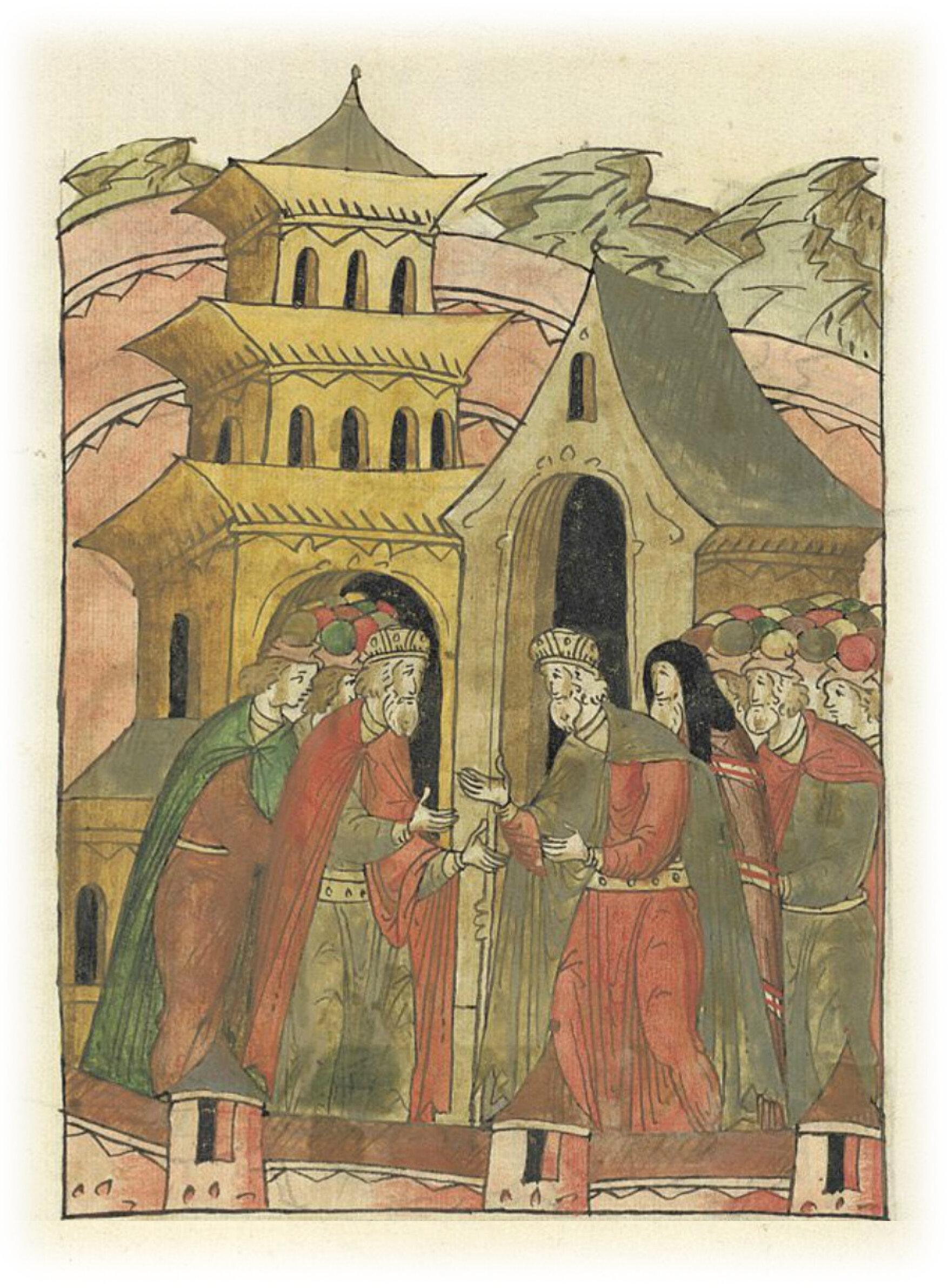 Он пришел к нему с епископом Симоном и с боярами своими.