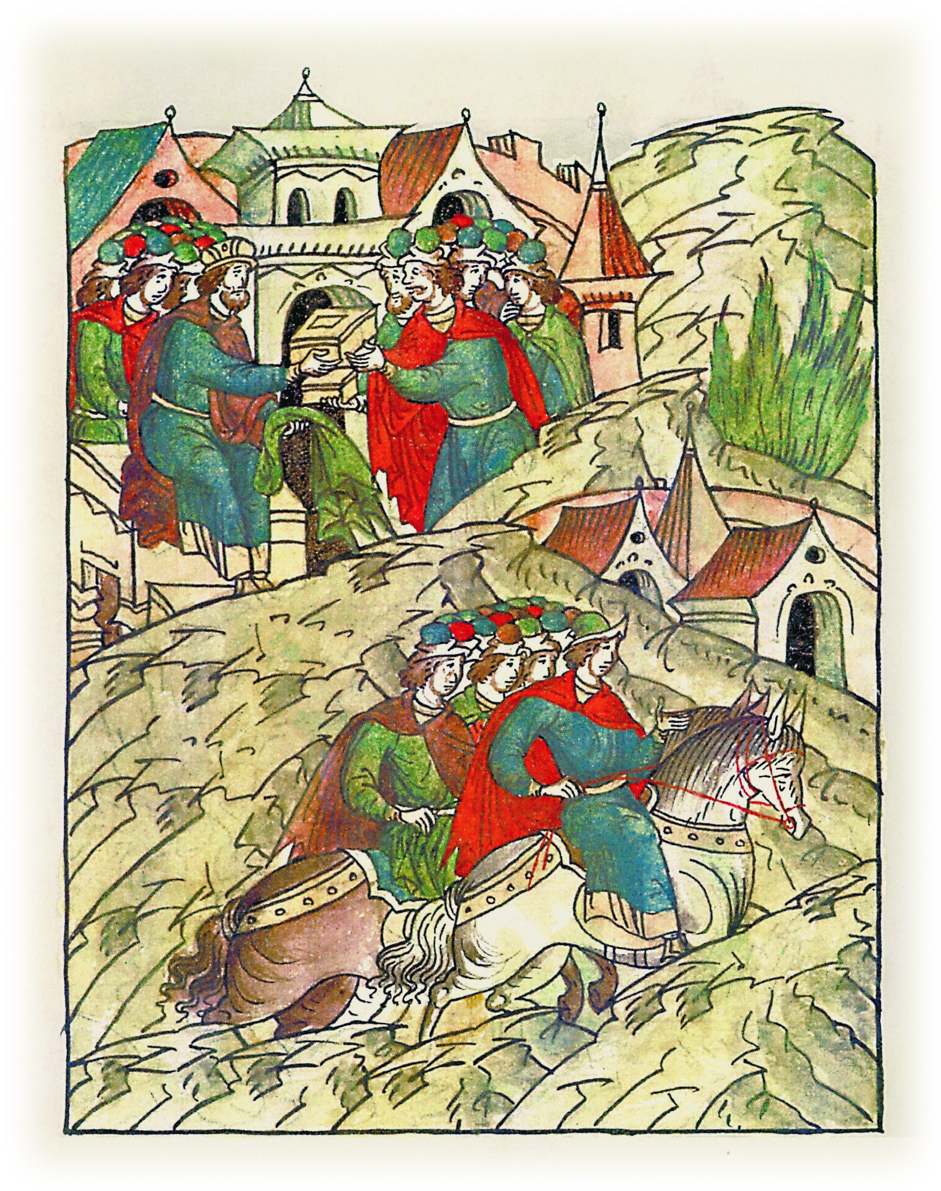 Ругодивские посадники Яким и Захар приезжают в Москву. Воеводы царя Ивана Васильевича Алексей Адашев и Иван Михайлов сообщают им, что государь пожалует их, если сдадут его воеводам помимо Ругодива Вышгород.