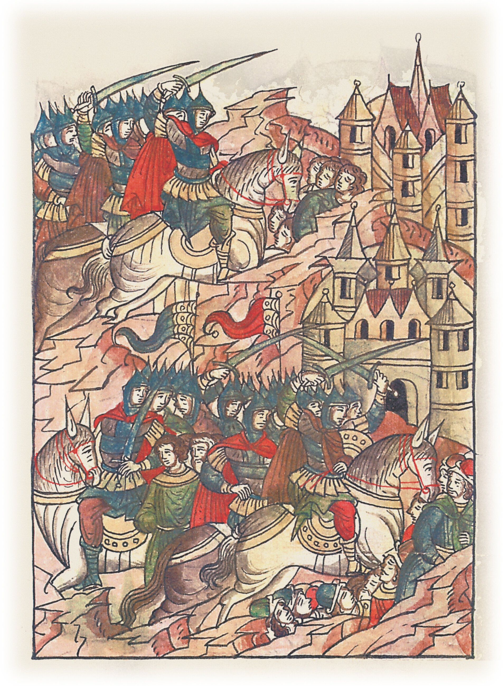 Языки говорят воеводам царя Ивана Васильевича, что магистр окопался большим рвом вокруг города Рындола, бьет из пушек и пищалей и приступает к Рындолу.