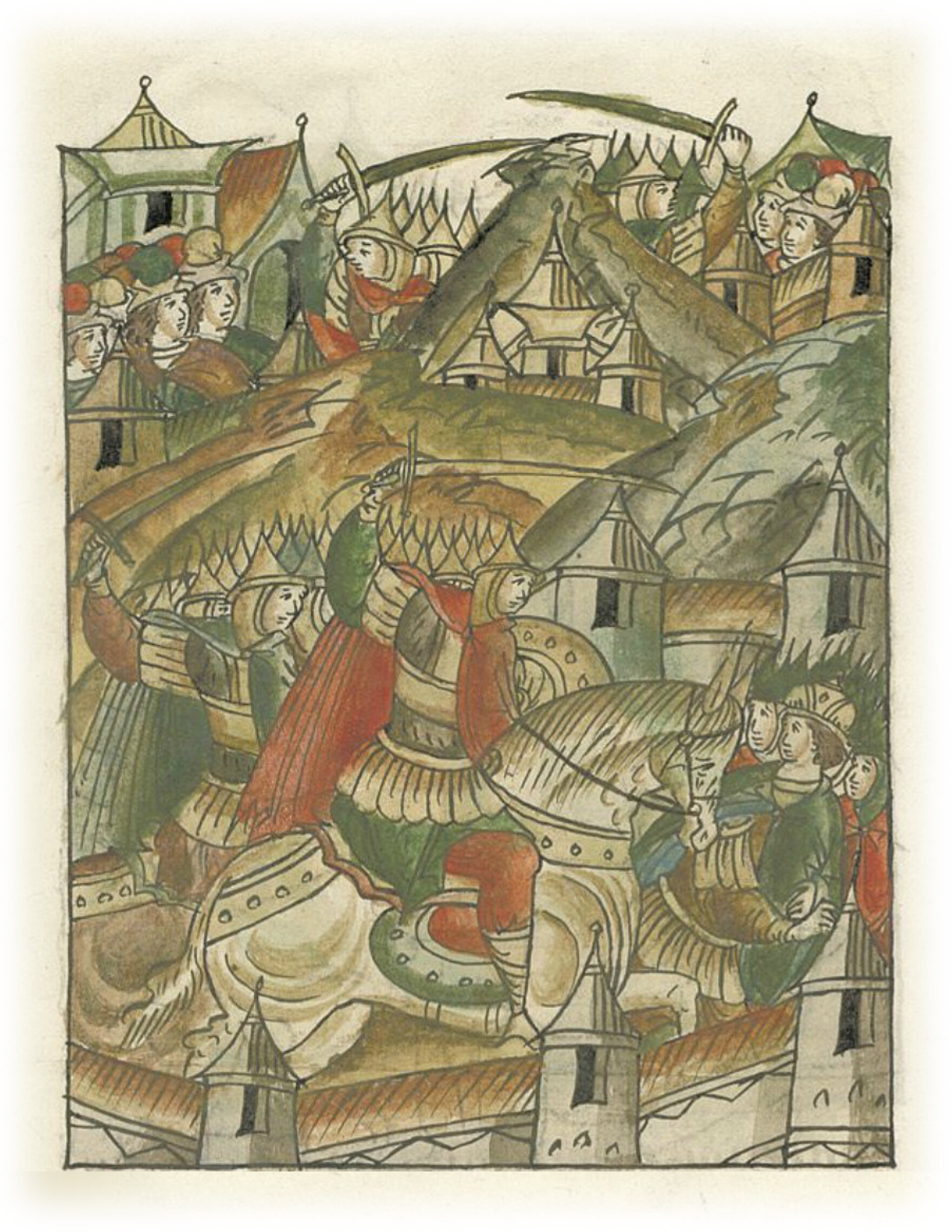 И оттуда всю ту страну и города многие попленили: Юрьев, Дмитров, Волок, Тверь, там же и сына Ярослава убили; и до Торжка нет места, где бы не воевали.