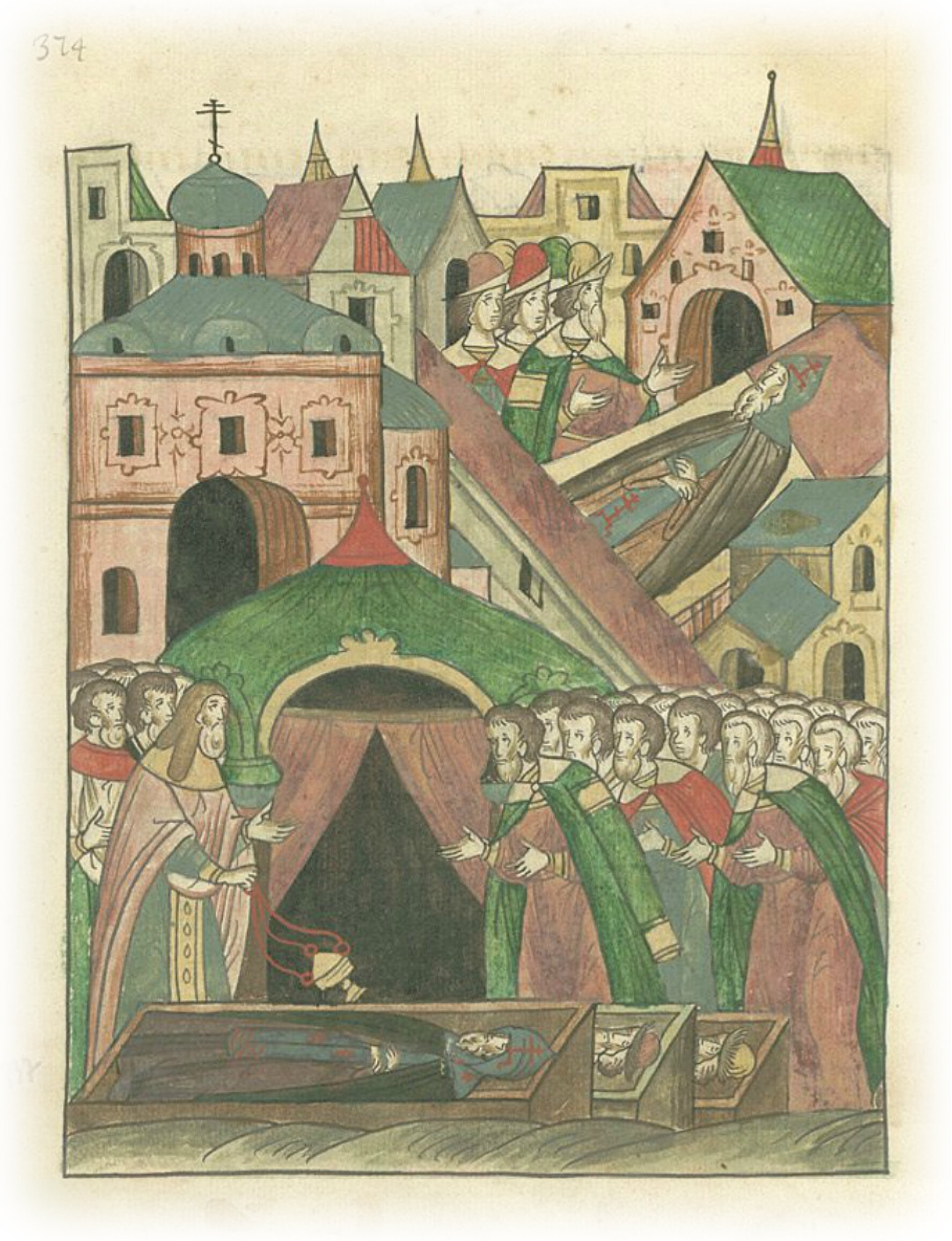 Кончина Дмитрия Константиновича, великого князя Суздальского и Нижнего Новгорода, и его похороны в церкви святого Спаса в Нижнем Новгороде.