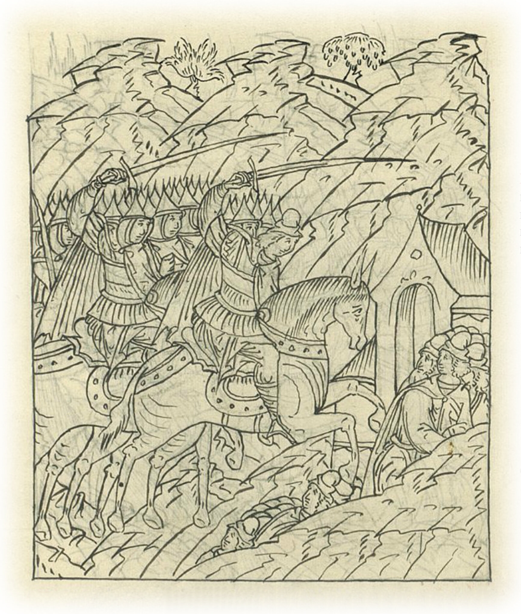 Языки говорят воеводам царя Ивана Васильевича, что магистр окопался большим рвом вокруг города Рындола, бьет из пушек и пищалей и приступает к Рындолу.