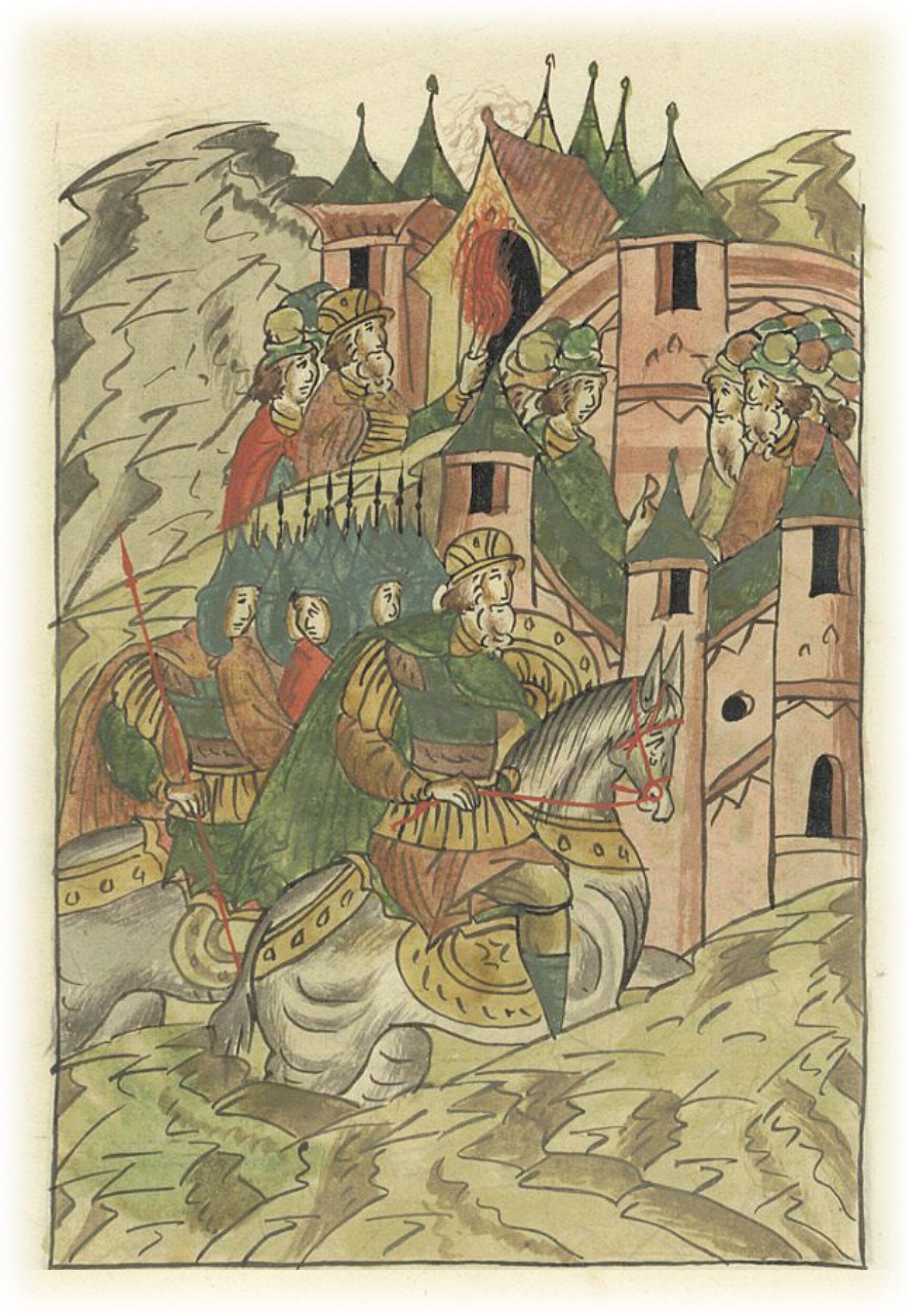 Языки говорят воеводам царя Ивана Васильевича, что магистр окопался большим рвом вокруг города Рындола, бьет из пушек и пищалей и приступает к Рындолу.