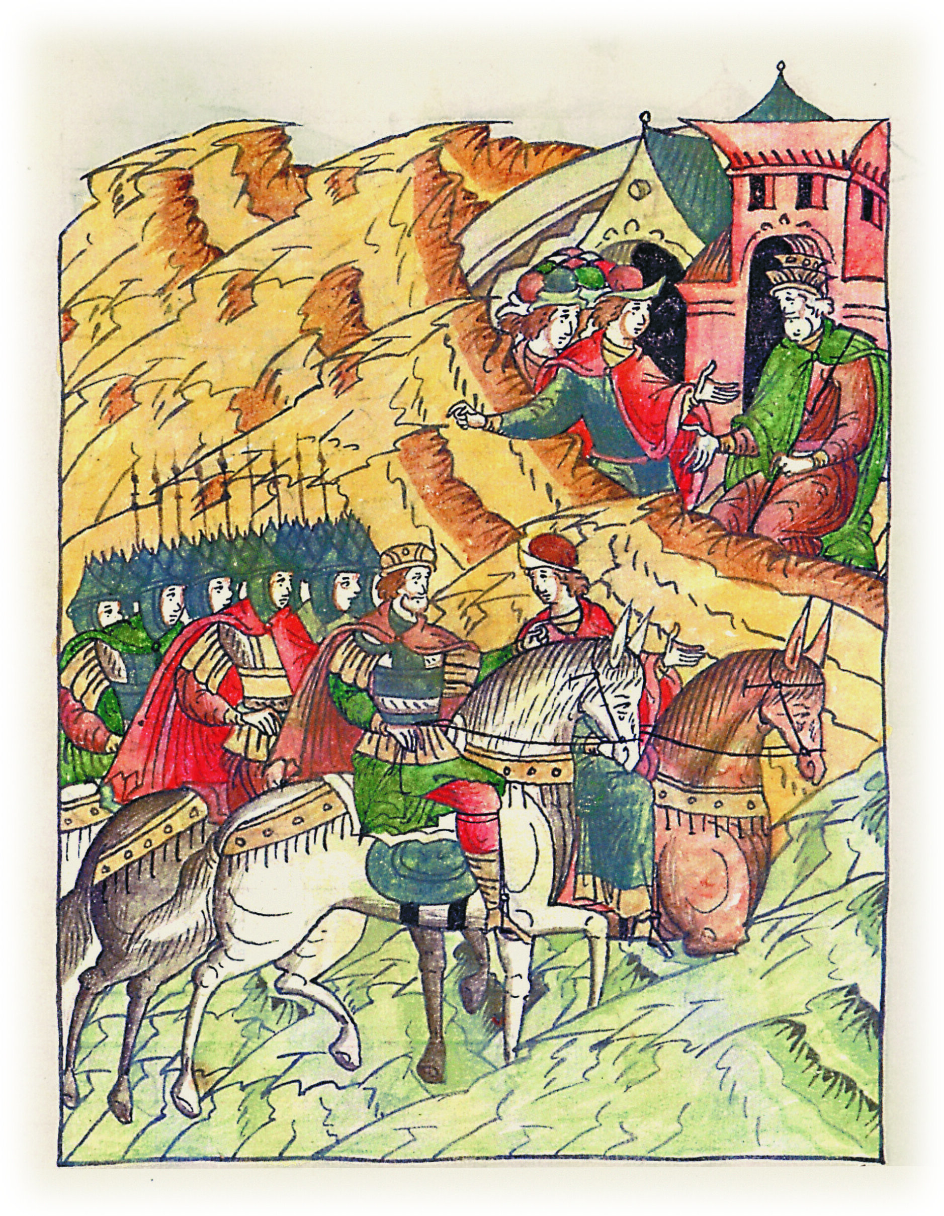 Послал король к Изяславу, говоря: «Отче! Кланяюсь тебе; сообщил мне про обиду Галичского князя, и я к тебе уже пошел, а ты пойди тотчас же; а не сделаем так, то пусть нас с ним Бог рассудит».