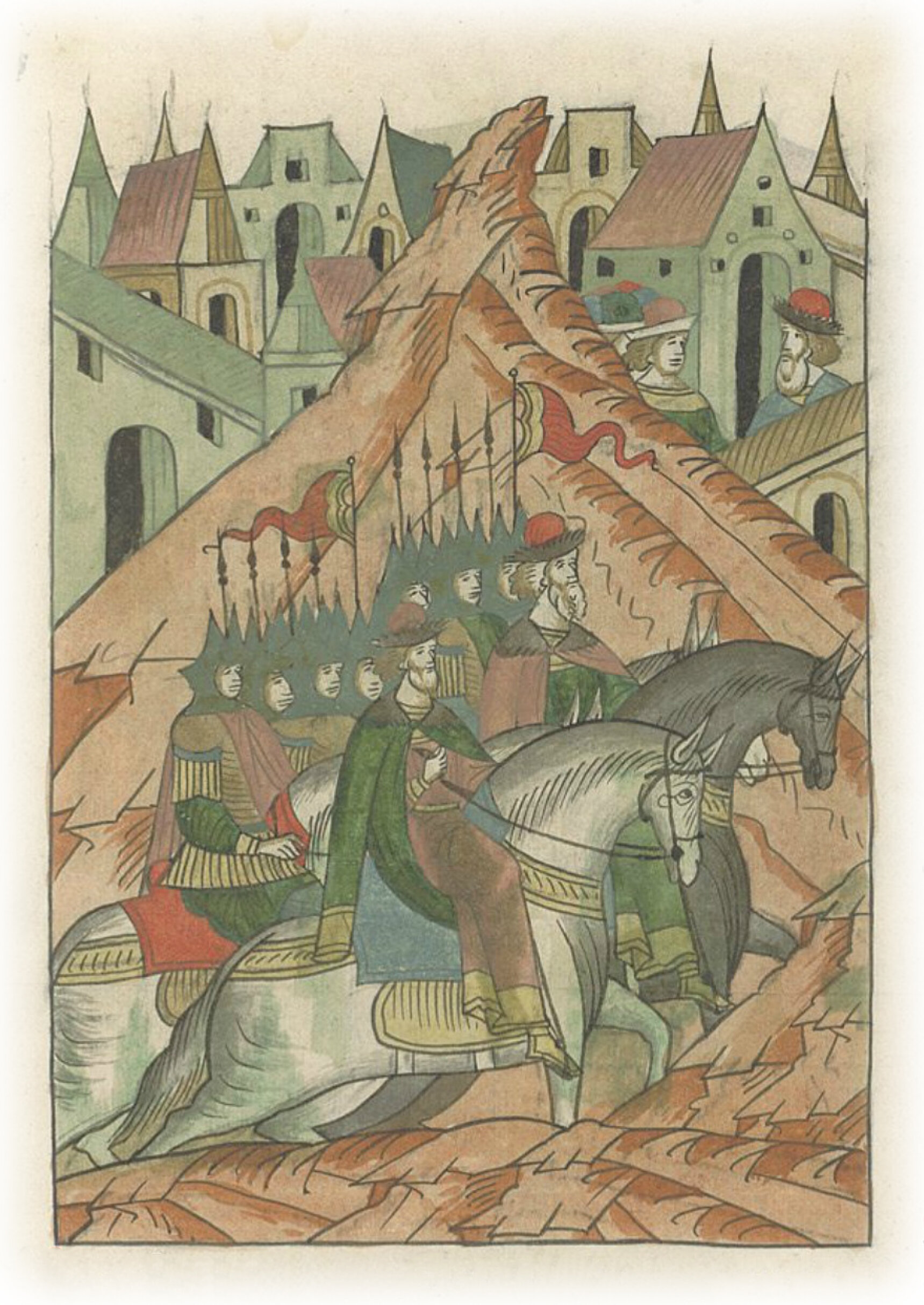 и за это пошел против него к Твери с ратью, со своим сыном великим князем Иваном Ивановичем, со своими братьями – князем Андреем и князем Борисом, со своими воеводами и со многими силами.