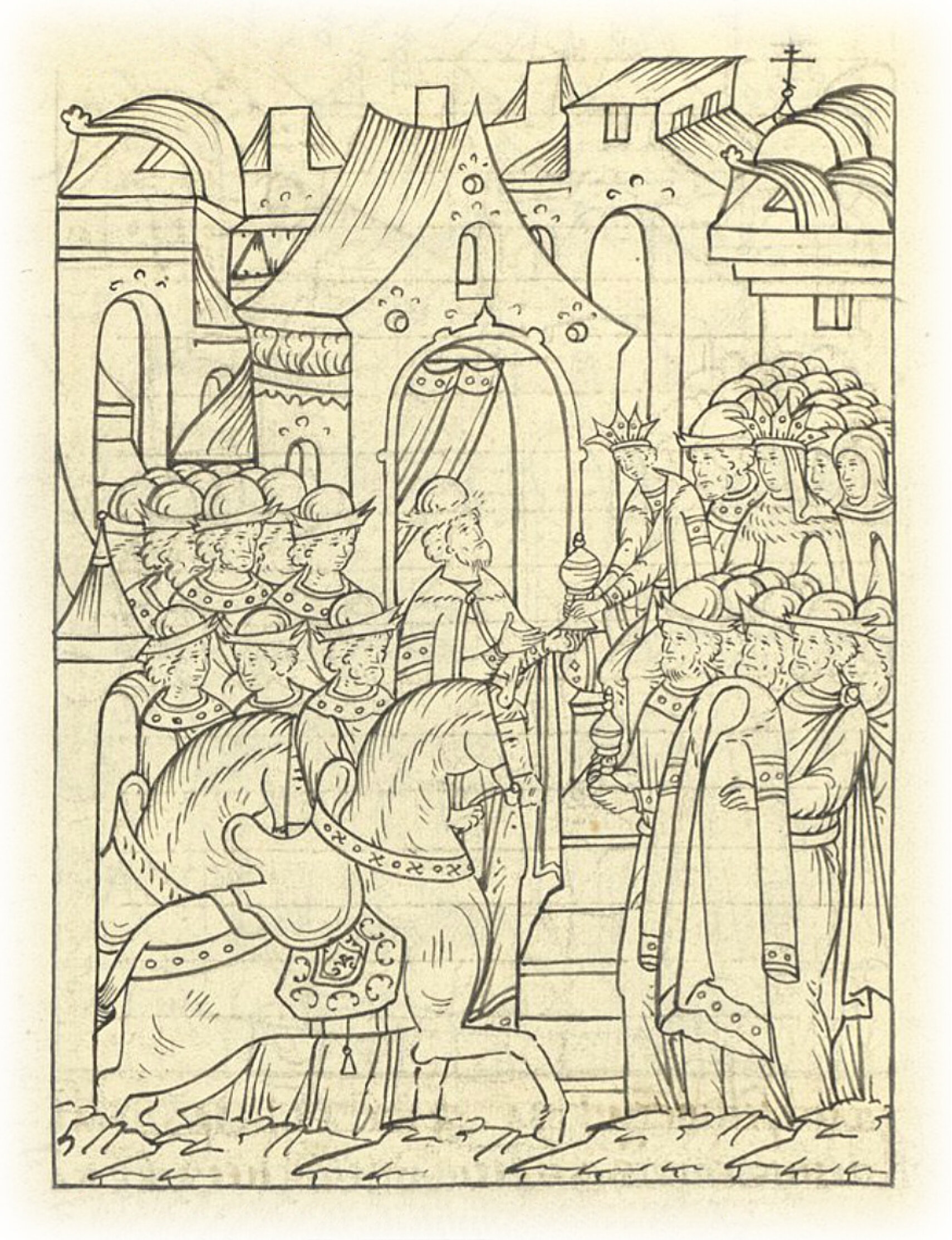 И почтили его, как и ранее того по кончине великих князей братьям их давали, а ему дали и свыше того; давали ему шубы и кубки, и коней иноходцев в седлах.