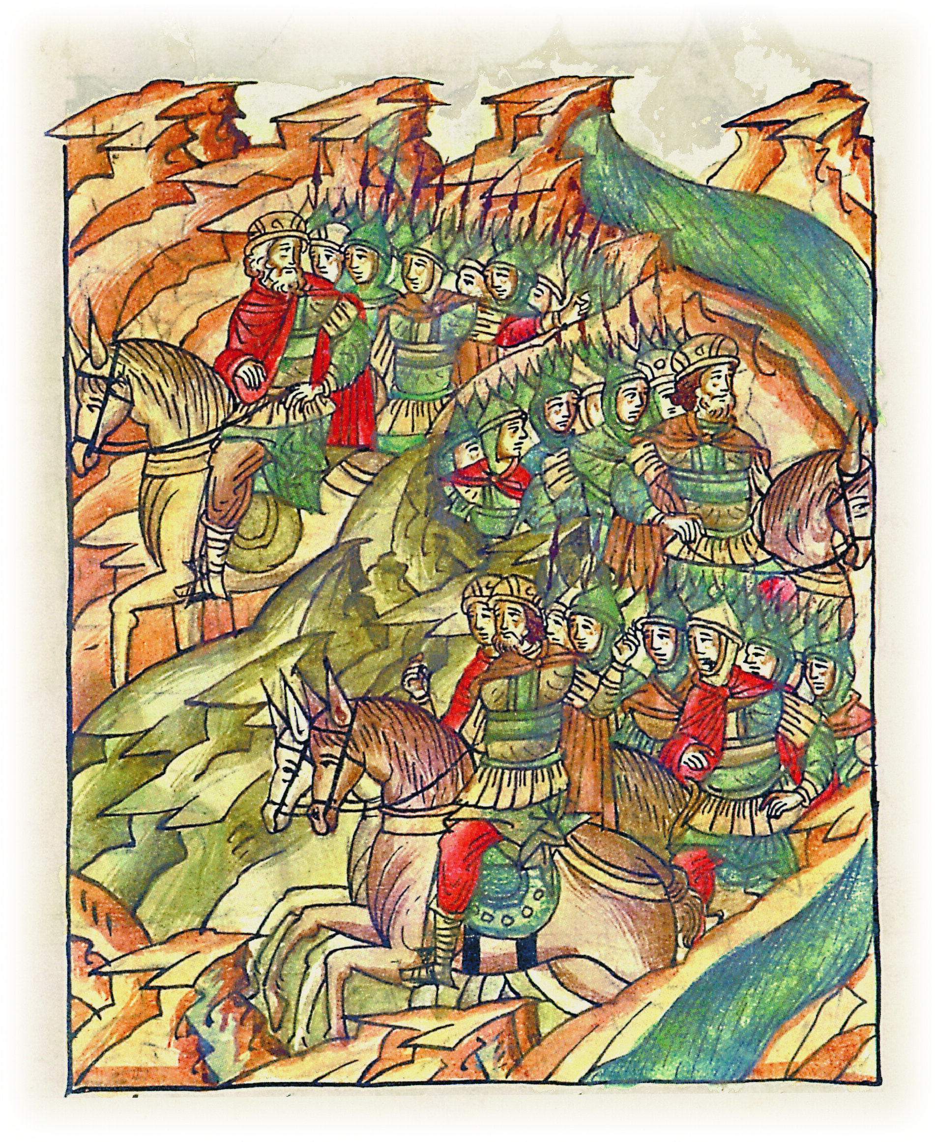 Воеводы царя Ивана Васильевича, разделившись, идут в погоню за царем Емгурчеем.