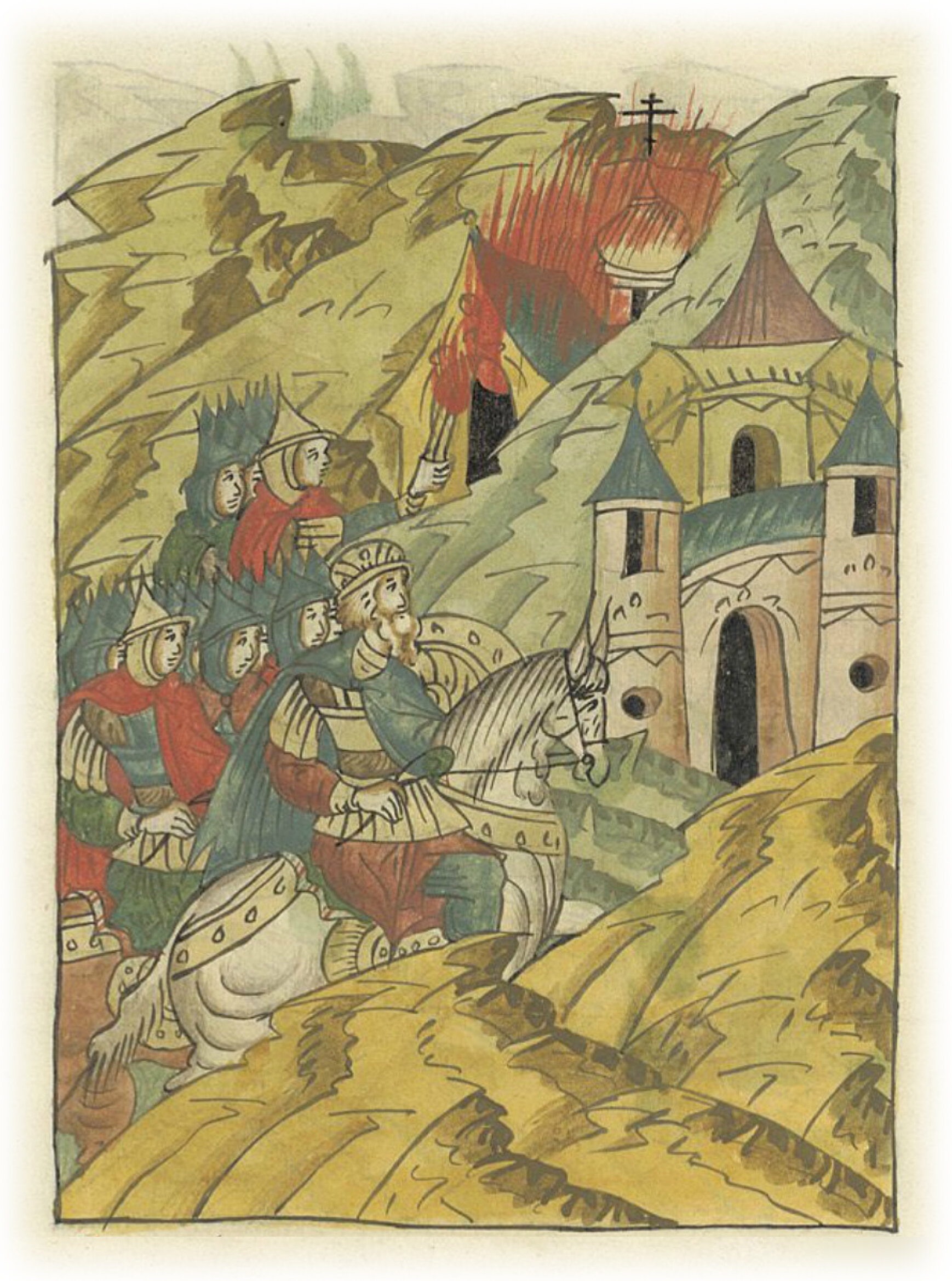 И Рязанскую землю всю опустошил, и города, и волости и села пожег, и скот посек.