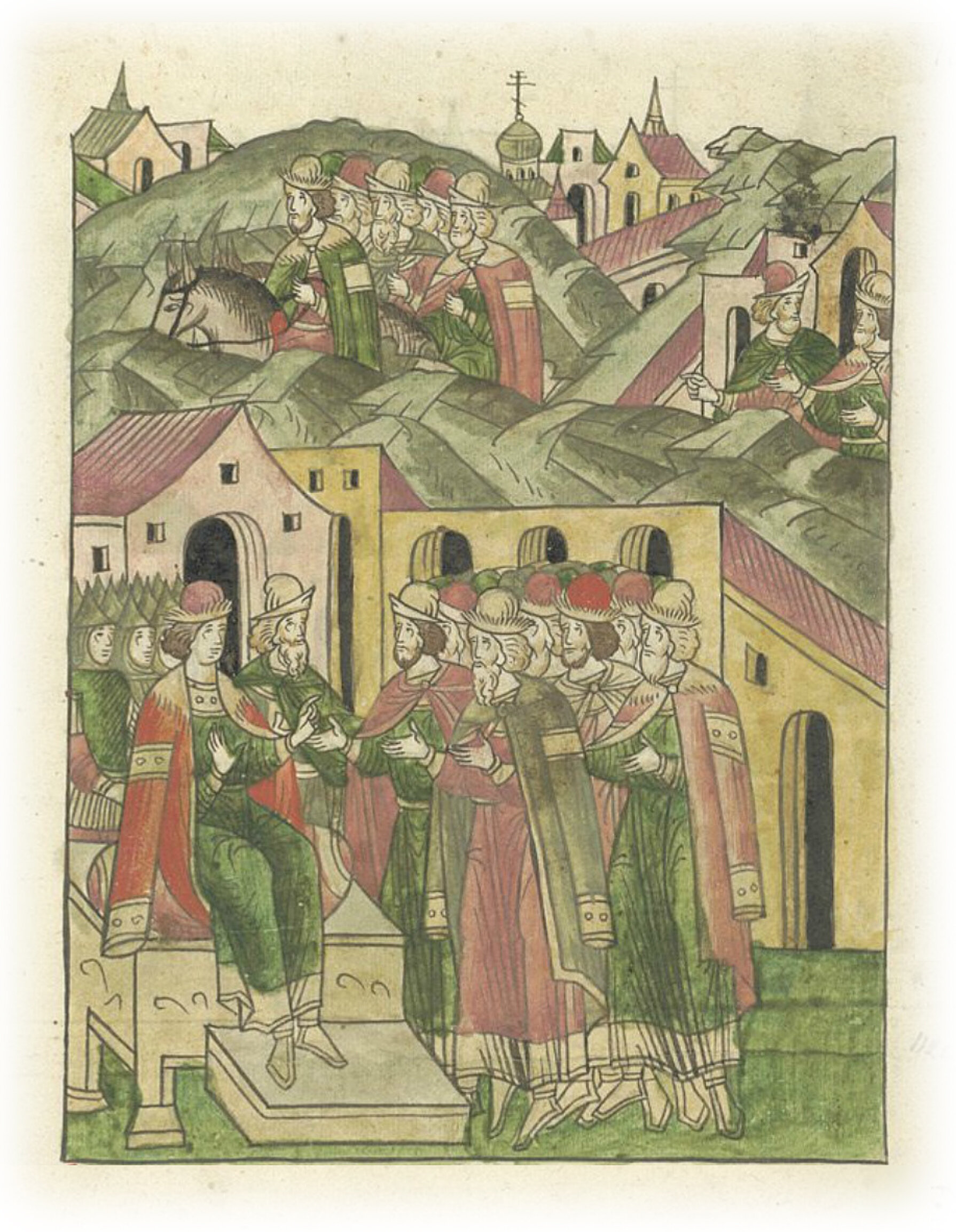 Ругодивские посадники Яким и Захар приезжают в Москву. Воеводы царя Ивана Васильевича Алексей Адашев и Иван Михайлов сообщают им, что государь пожалует их, если сдадут его воеводам помимо Ругодива Вышгород.