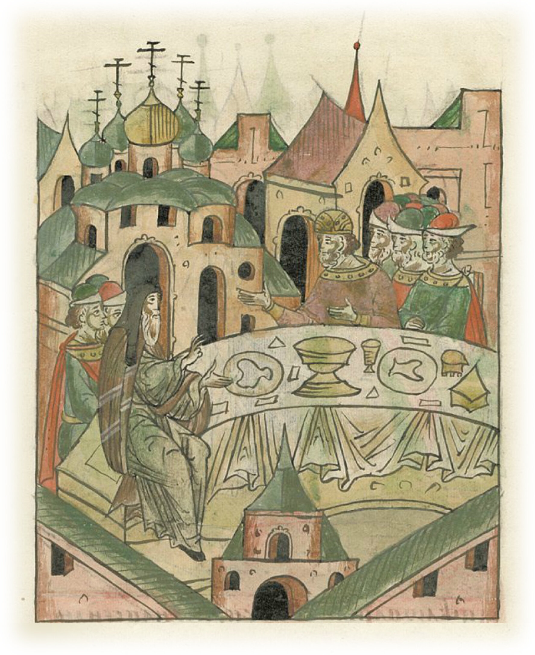 Братья Константиновичи, примирившись, все вместе празднуют Рождество Богородицы у епископа Митрофана в Суздале.