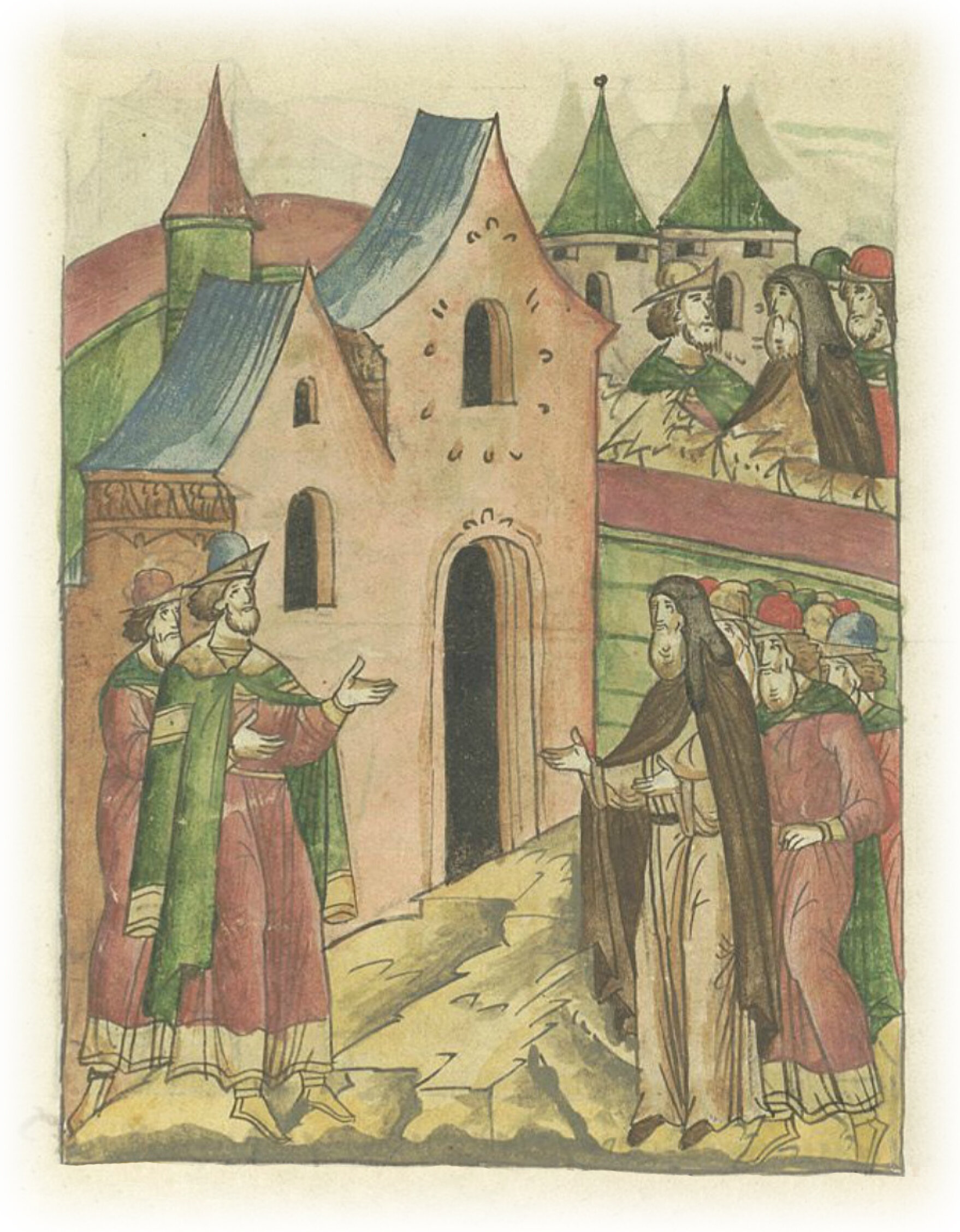 Ругодивские посадники Яким и Захар приезжают в Москву. Воеводы царя Ивана Васильевича Алексей Адашев и Иван Михайлов сообщают им, что государь пожалует их, если сдадут его воеводам помимо Ругодива Вышгород.