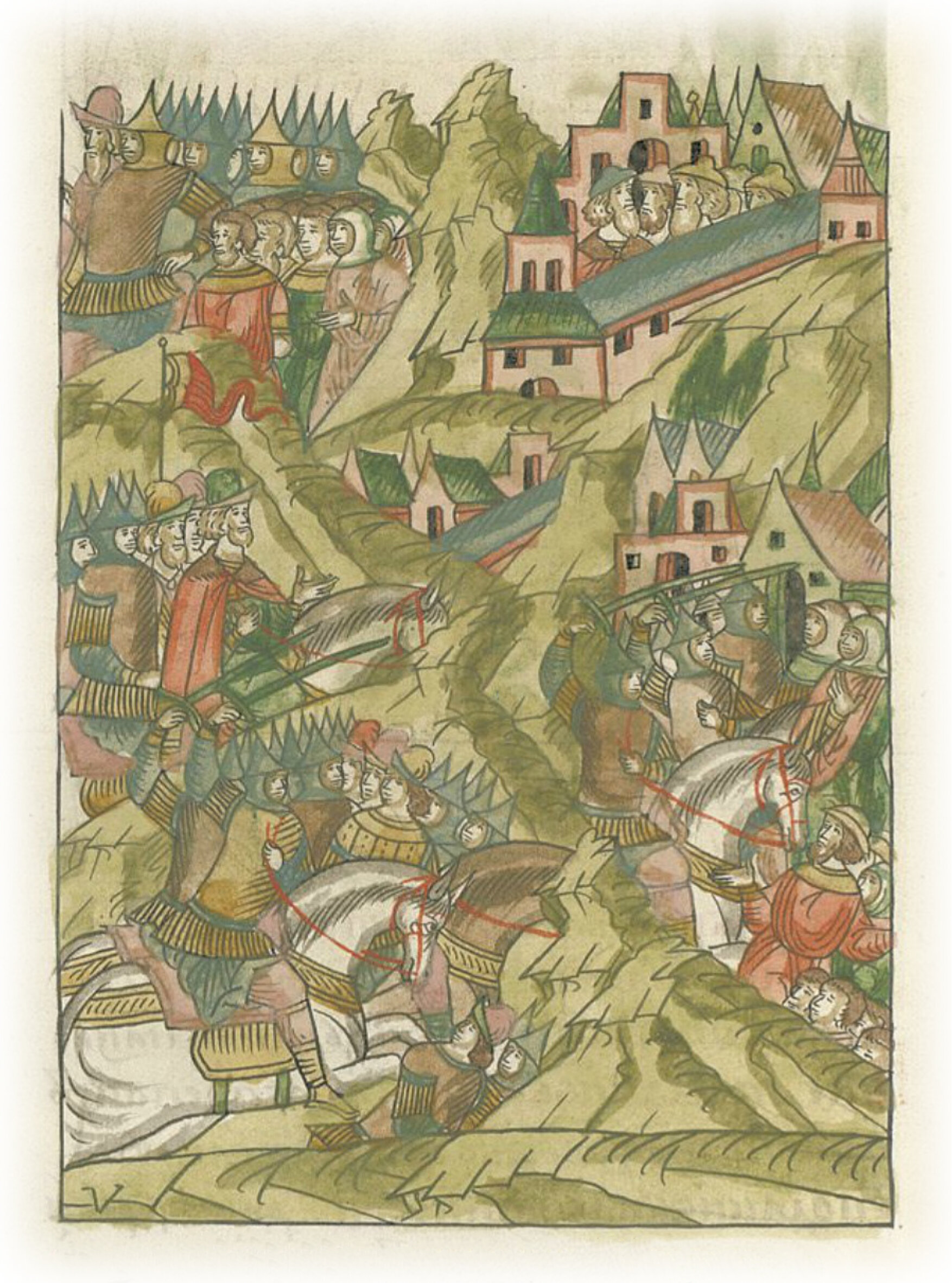 Языки говорят воеводам царя Ивана Васильевича, что магистр окопался большим рвом вокруг города Рындола, бьет из пушек и пищалей и приступает к Рындолу.