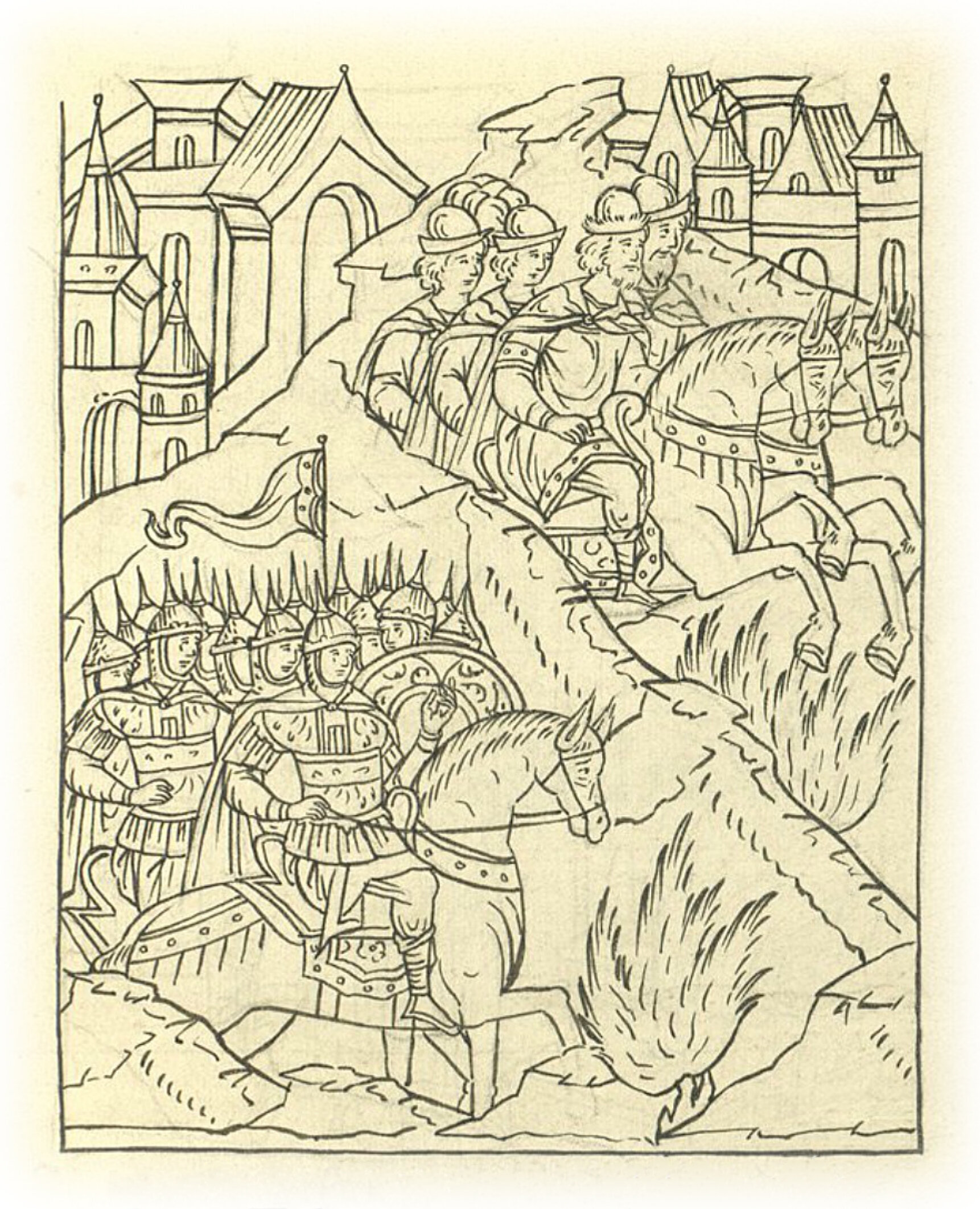 Языки говорят воеводам царя Ивана Васильевича, что магистр окопался большим рвом вокруг города Рындола, бьет из пушек и пищалей и приступает к Рындолу.