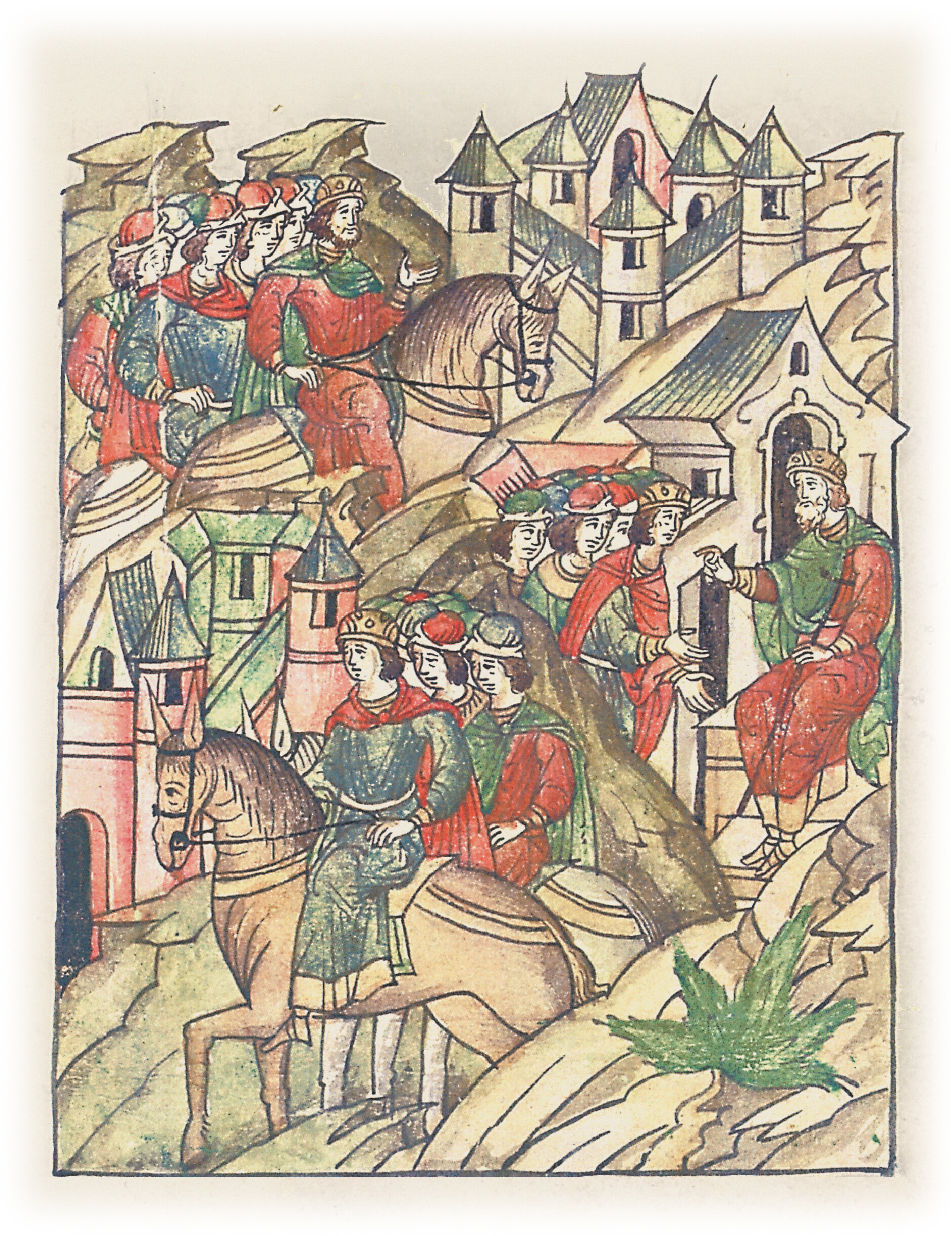 Ругодивские посадники Яким и Захар приезжают в Москву. Воеводы царя Ивана Васильевича Алексей Адашев и Иван Михайлов сообщают им, что государь пожалует их, если сдадут его воеводам помимо Ругодива Вышгород.