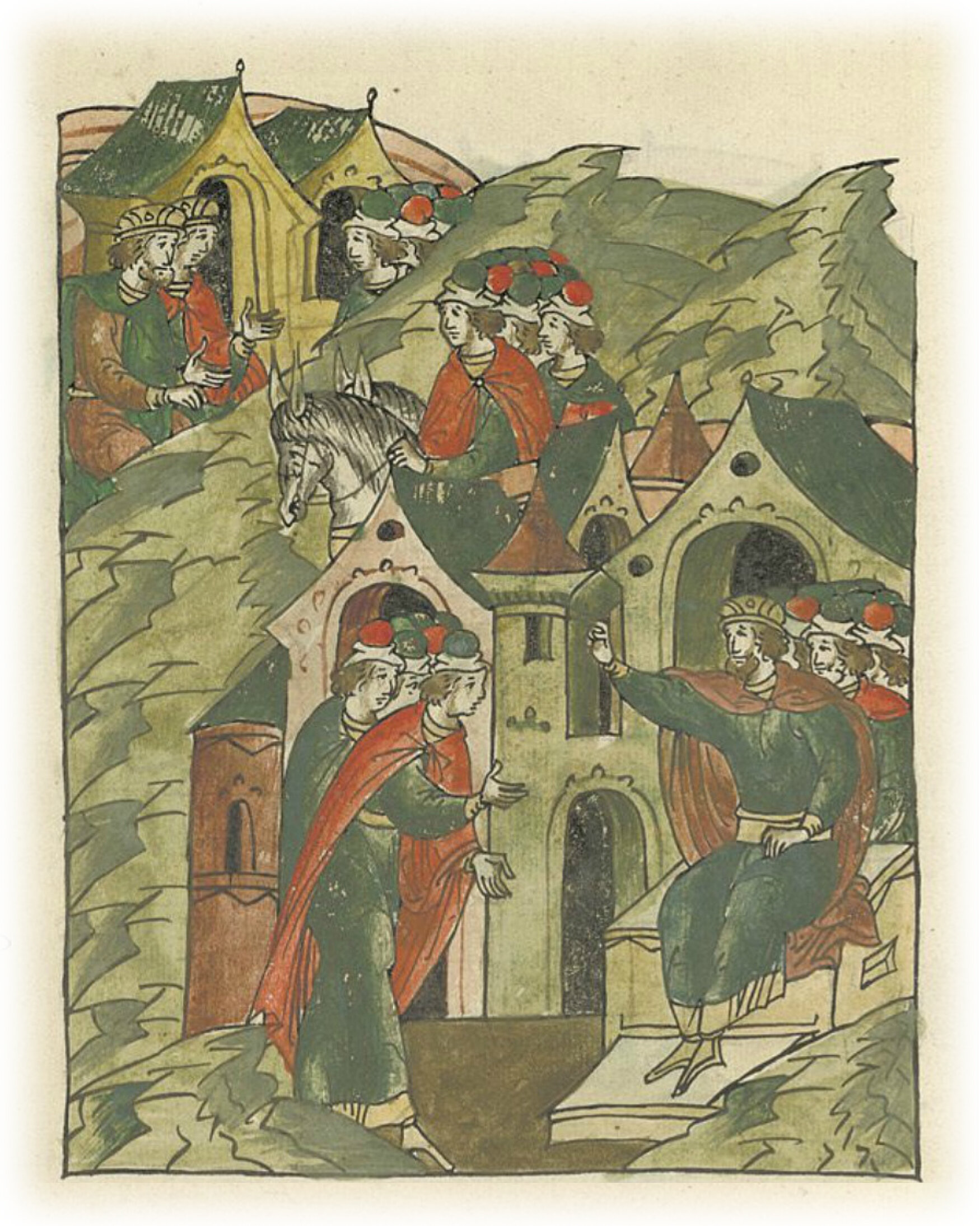 Он же отвечал ему, говоря: «Подождите немного, так как послал я к своим братьям на Русь, когда придет ко мне от них ответ, тогда и вам отвечу».