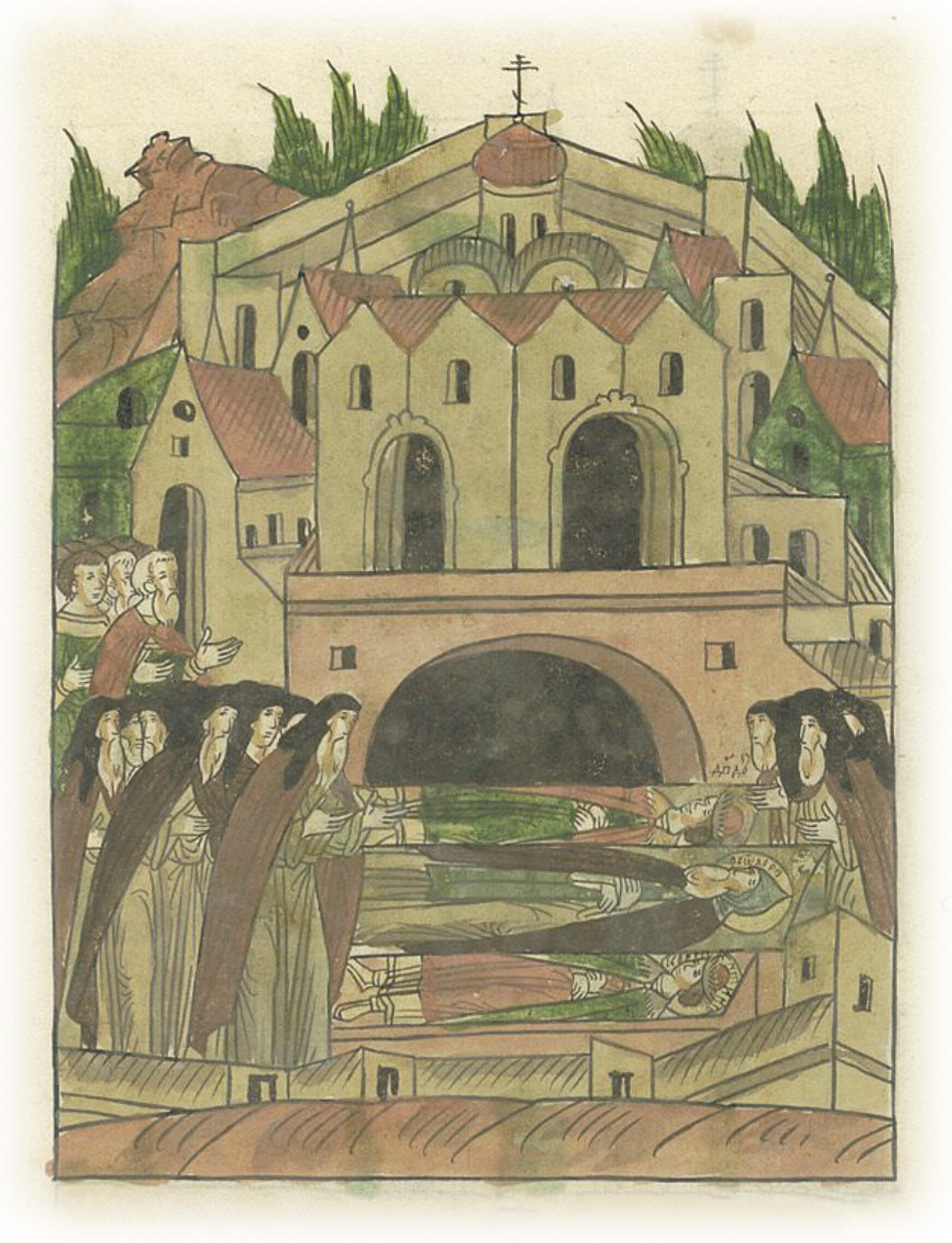 Обретение мощей князя Федора Ростиславича и его сыновей Константина и Давыда в Ярославле в монастыре святого Спаса.