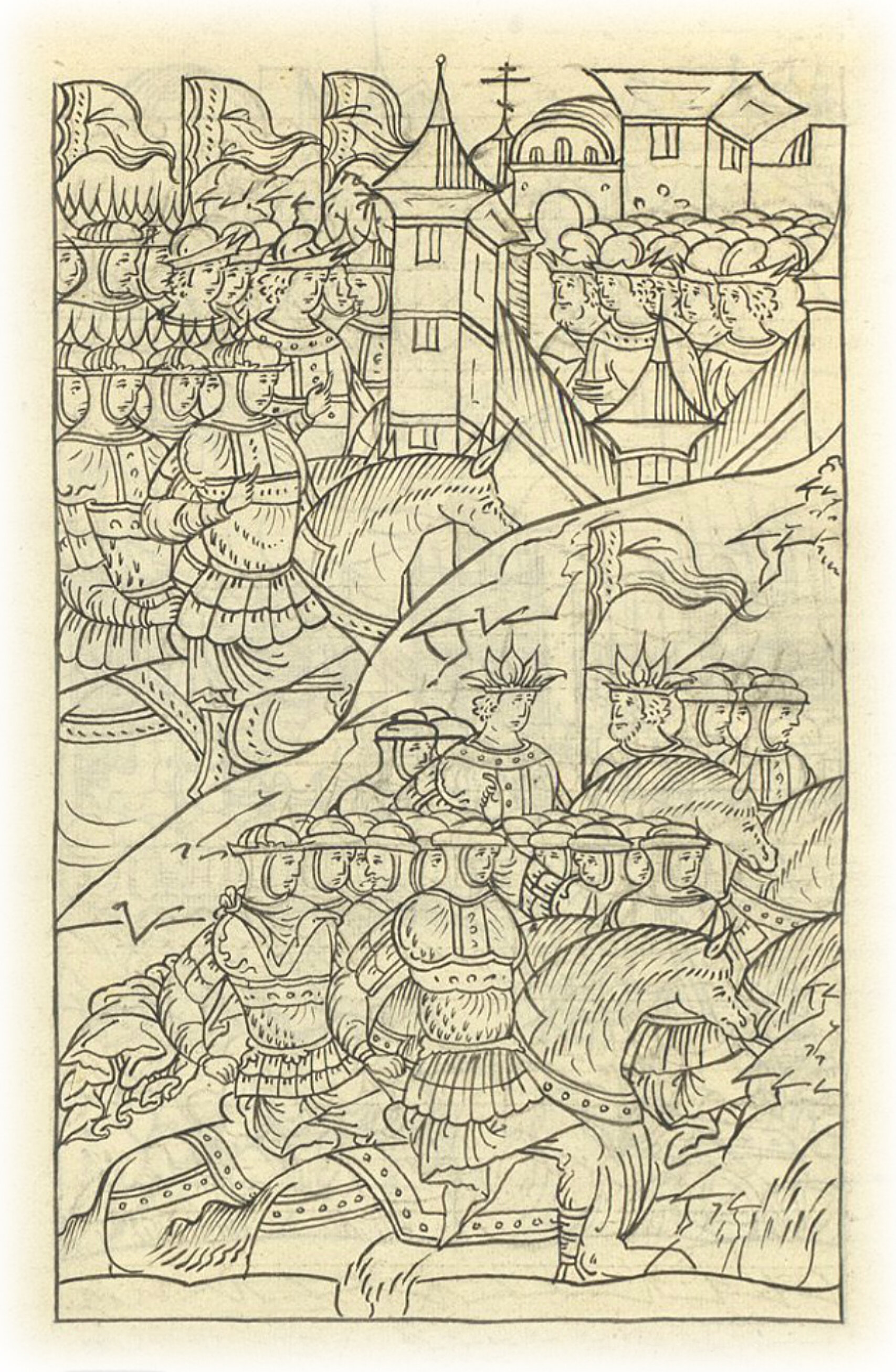 Воеводы же великого князя пришли к городу, а царь, как стало известно, поспешил от города прочь со всеми людьми.