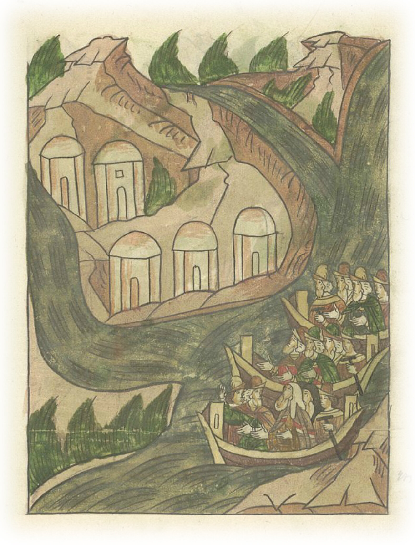 О походе митрополита Пимена в Царьград со Смоленским владыкой Михаилом и Спасским архимандритом Сергием. Путешествие на корабле по реке Дон.