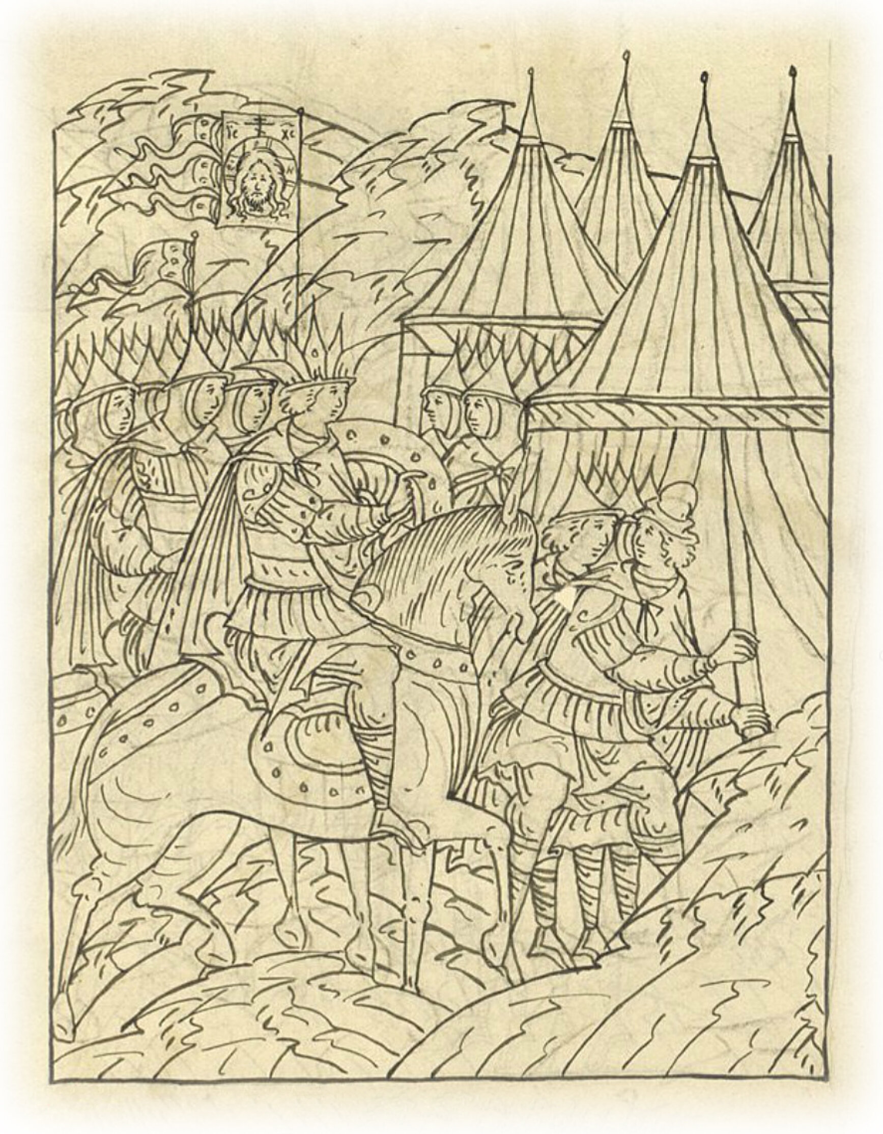 и потом велел ставить шатры свои царские. И, устроив стан,