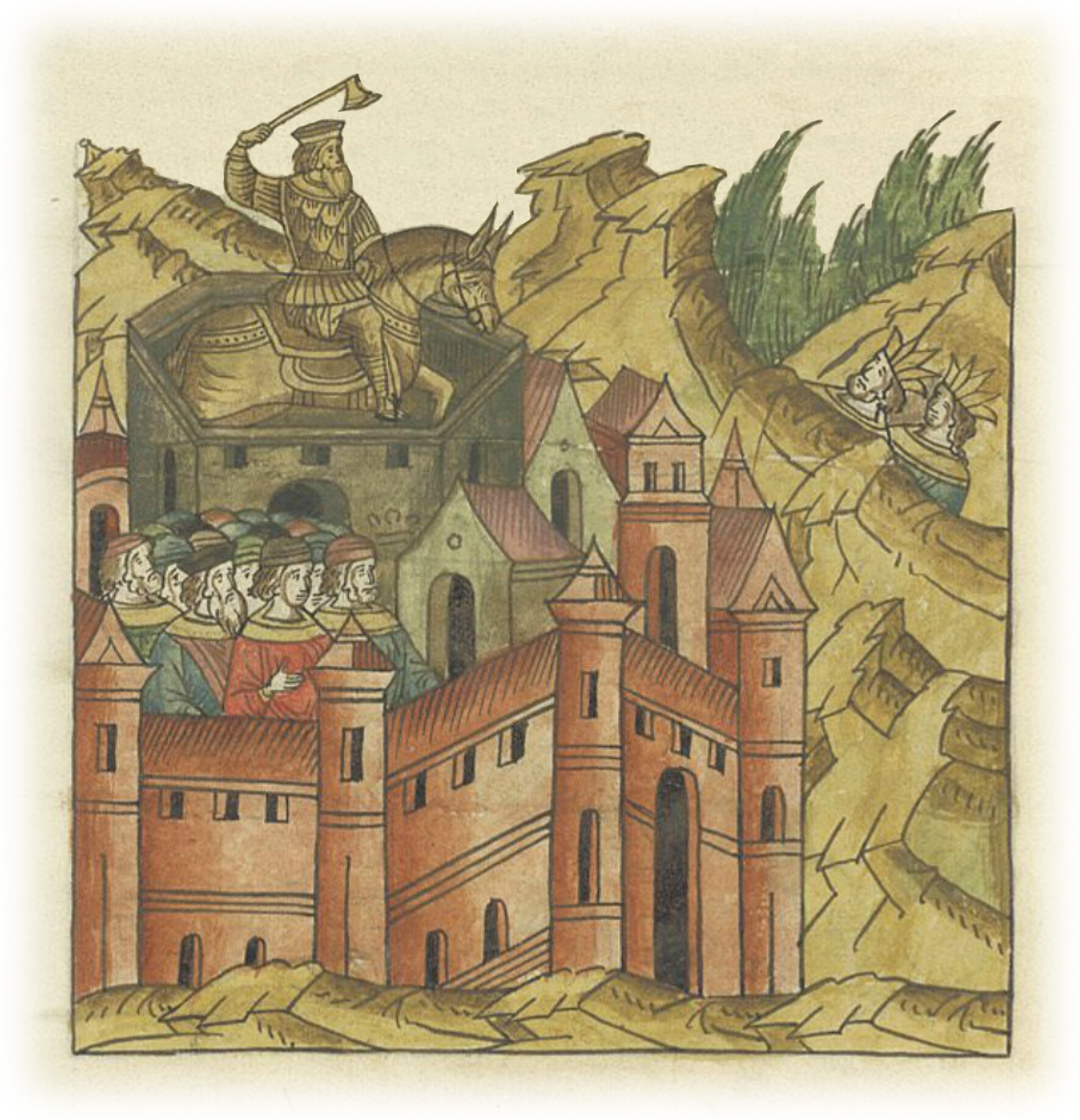 Языки говорят воеводам царя Ивана Васильевича, что магистр окопался большим рвом вокруг города Рындола, бьет из пушек и пищалей и приступает к Рындолу.