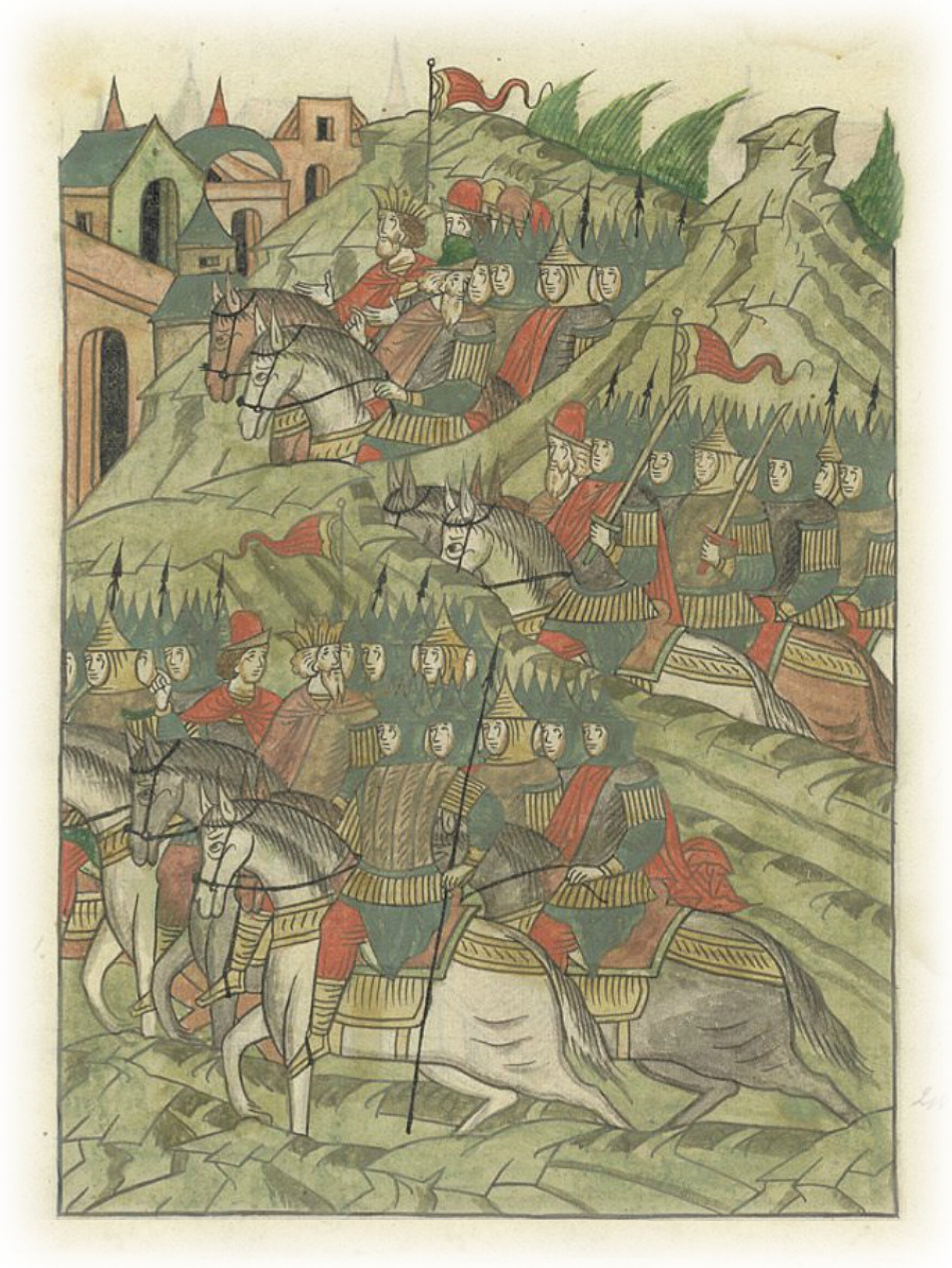Царь Тохтамыш посылает погоню за Мамаем, который прибегает к городу Кафа.