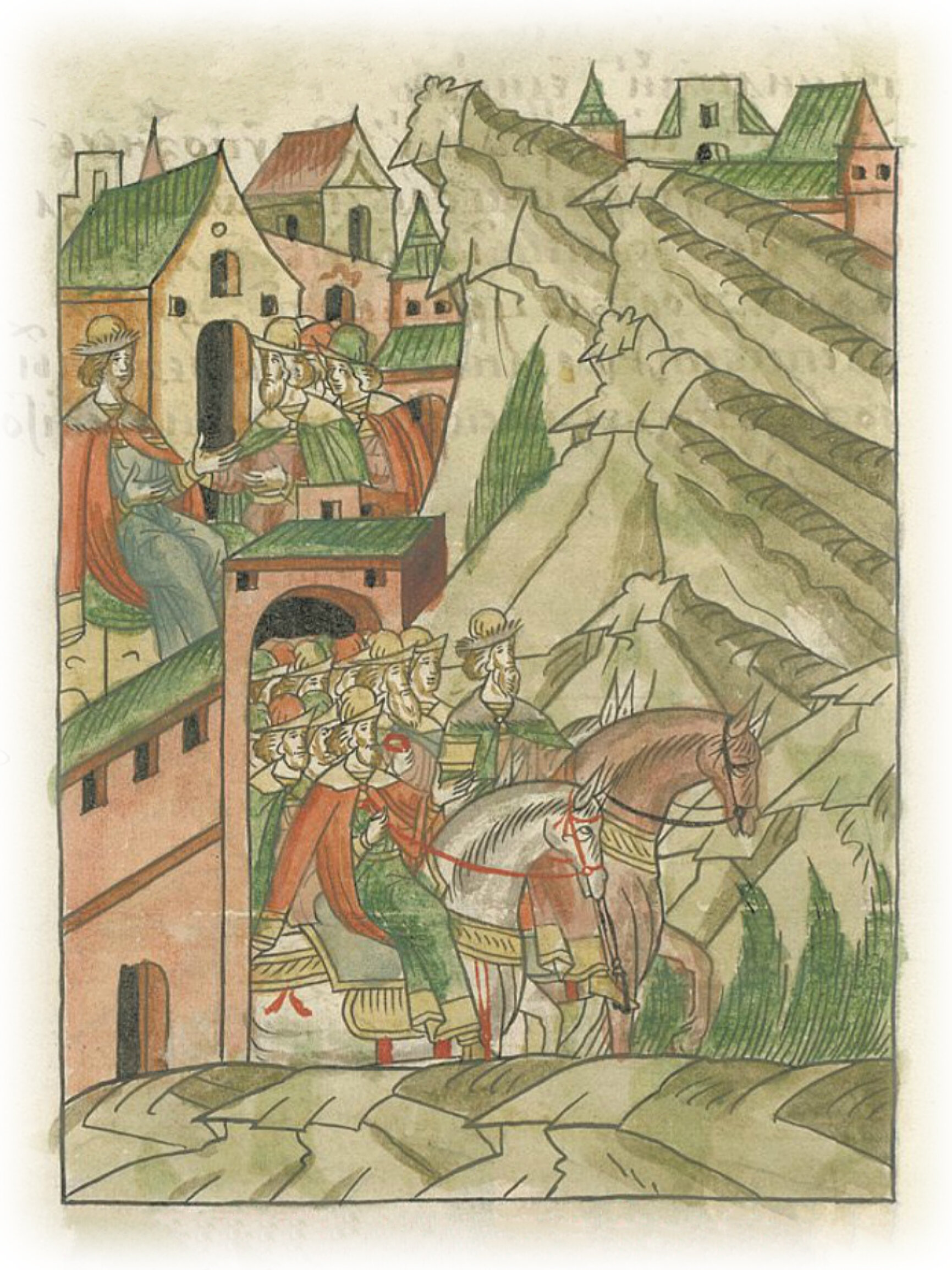 О поезде великого князя в Новгород. Месяца того же в 22 день в воскресенье пошел князь великий Иван Васильевич к Новгороду Великому миром со многими людьми, а на Москве оставил сына своего великого князя Ивана Ивановича.