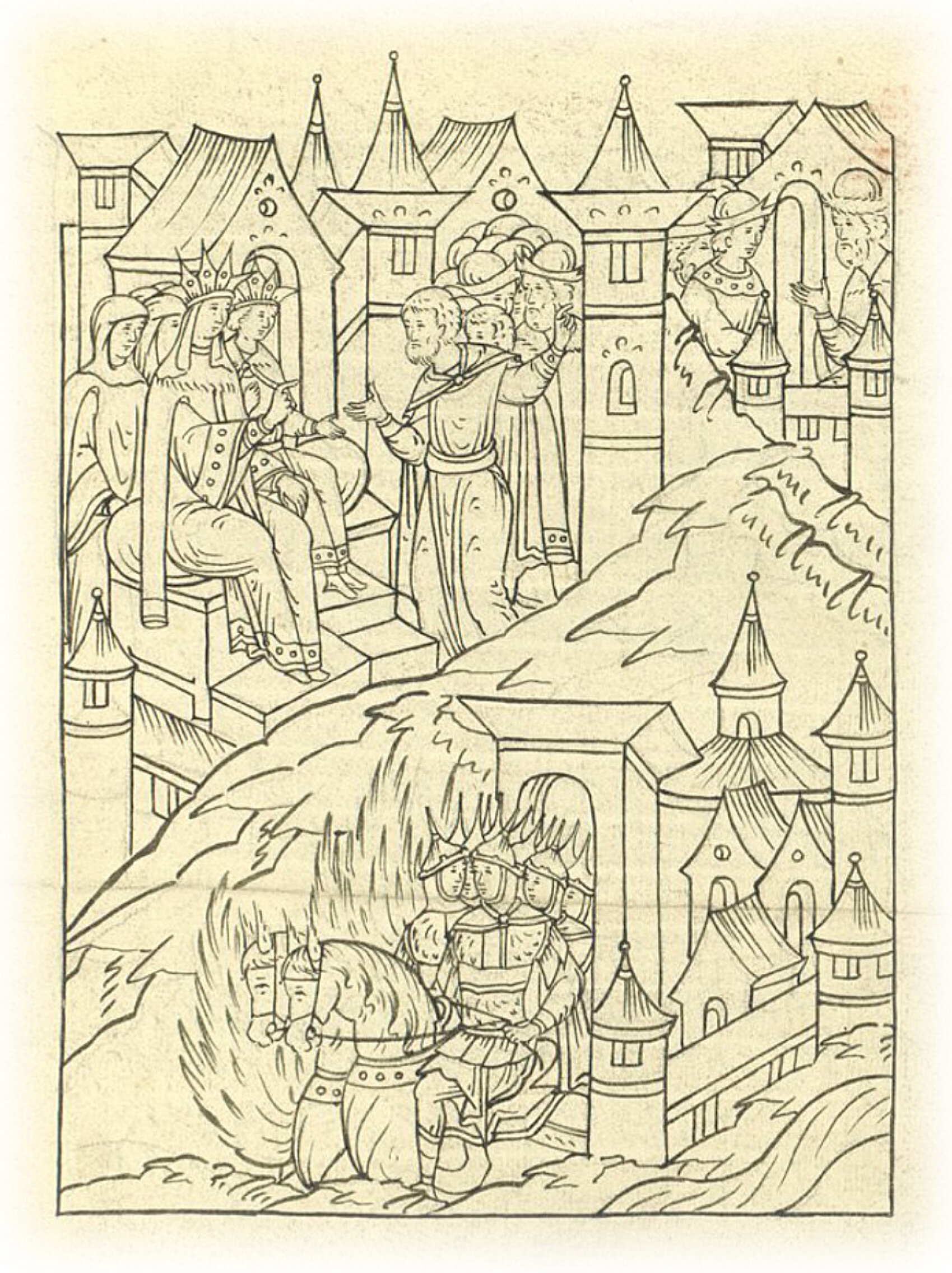 Ругодивские посадники Яким и Захар приезжают в Москву. Воеводы царя Ивана Васильевича Алексей Адашев и Иван Михайлов сообщают им, что государь пожалует их, если сдадут его воеводам помимо Ругодива Вышгород.