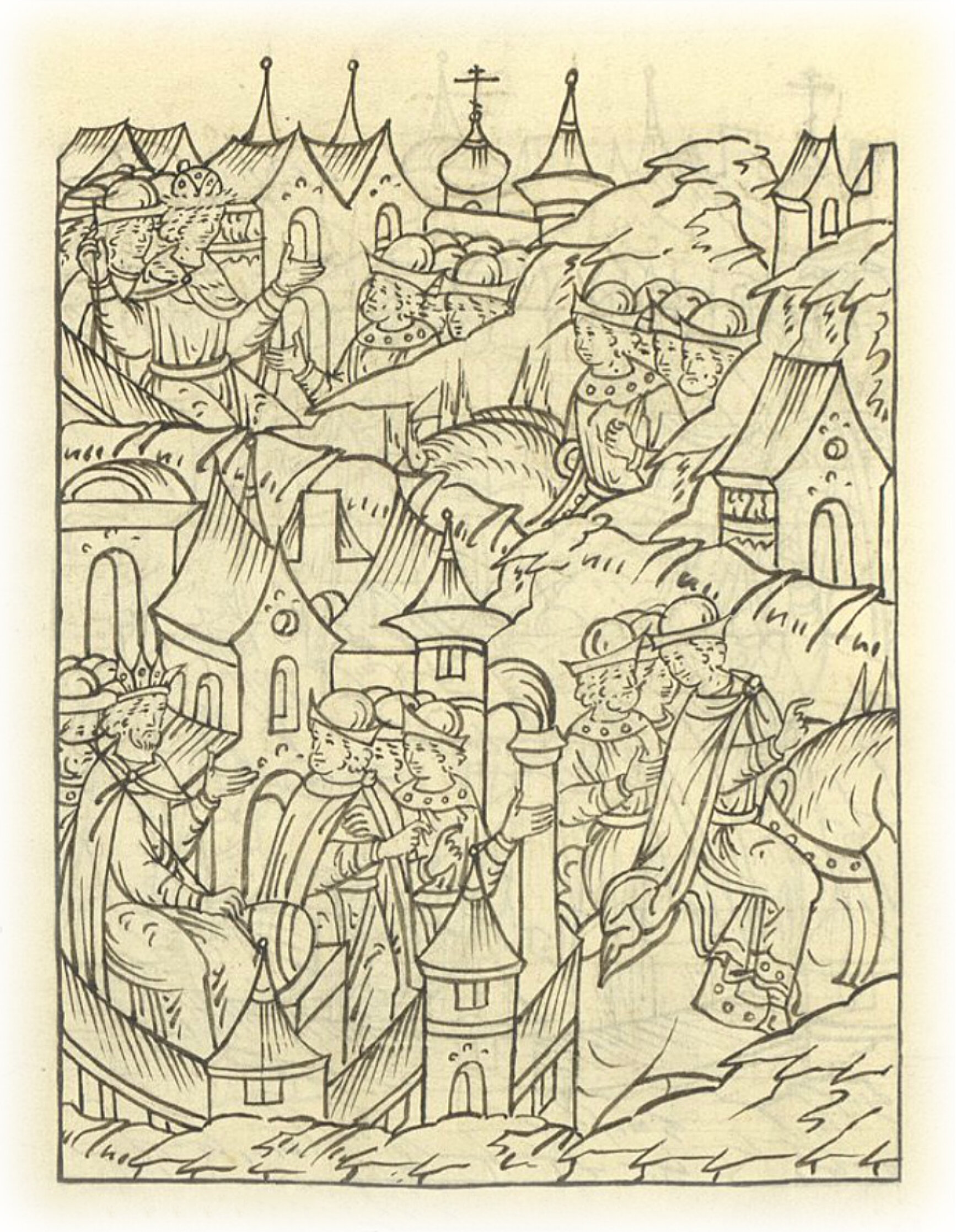 Ругодивские посадники Яким и Захар приезжают в Москву. Воеводы царя Ивана Васильевича Алексей Адашев и Иван Михайлов сообщают им, что государь пожалует их, если сдадут его воеводам помимо Ругодива Вышгород.