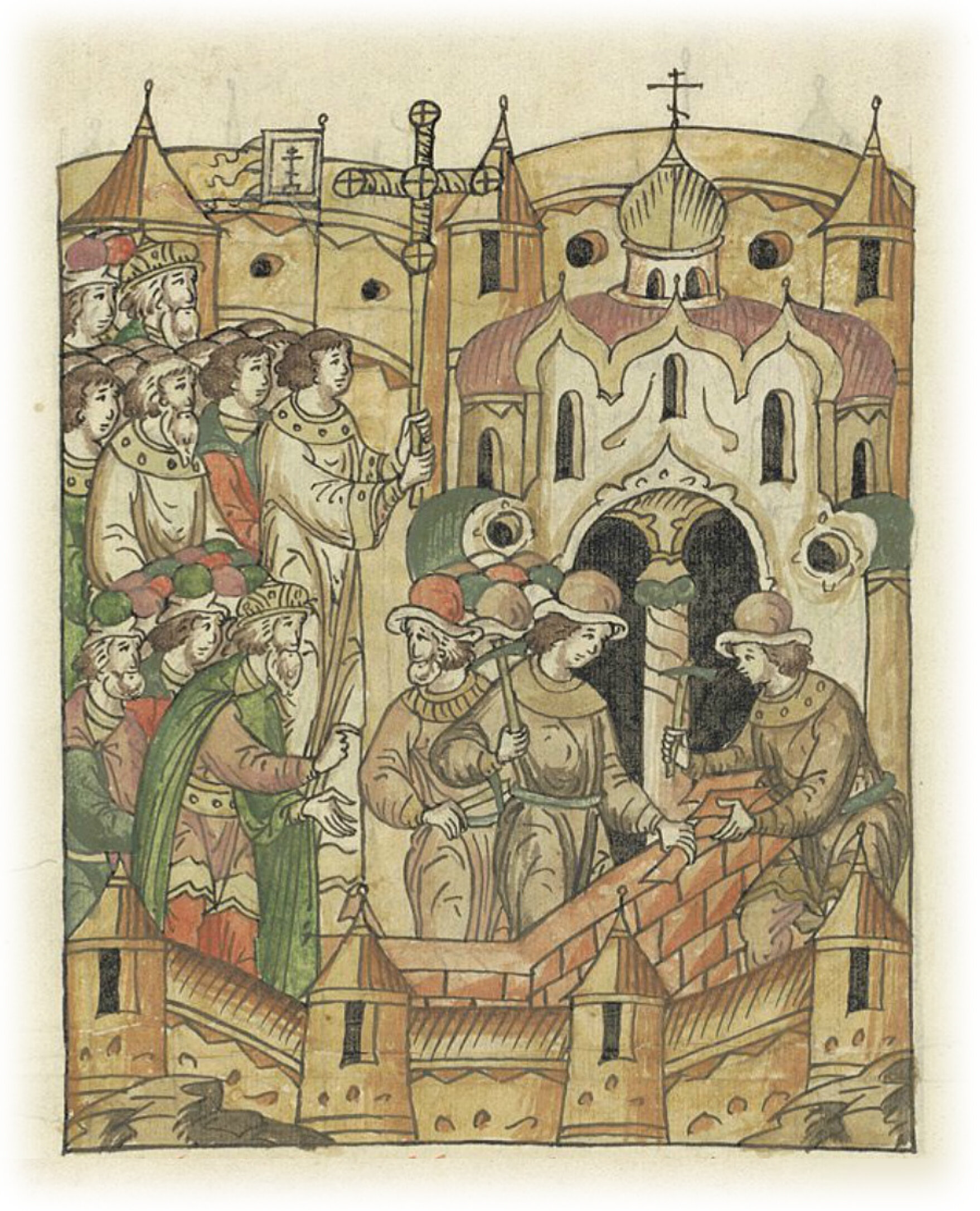 В 6725 (1217) году князь великий Константин Всеволодович заложил церковь каменную Воздвижения честного креста на Торговище во Владимире, месяца мая в 6 день, и в том же году она завершена была, и освящена месяца сентября в 14 день.