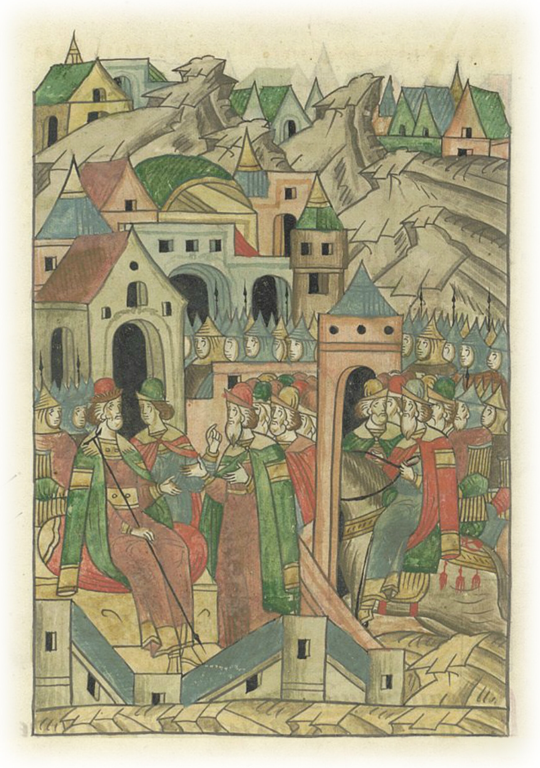 Также пришли ярославские князья со всеми силами своими – князь Андрей и князь Роман Прозоровские, князь Лев Курбский, князь Дмитрий Ростовский, – и князья устюжские, и иные многие князья и воеводы со многими силами.