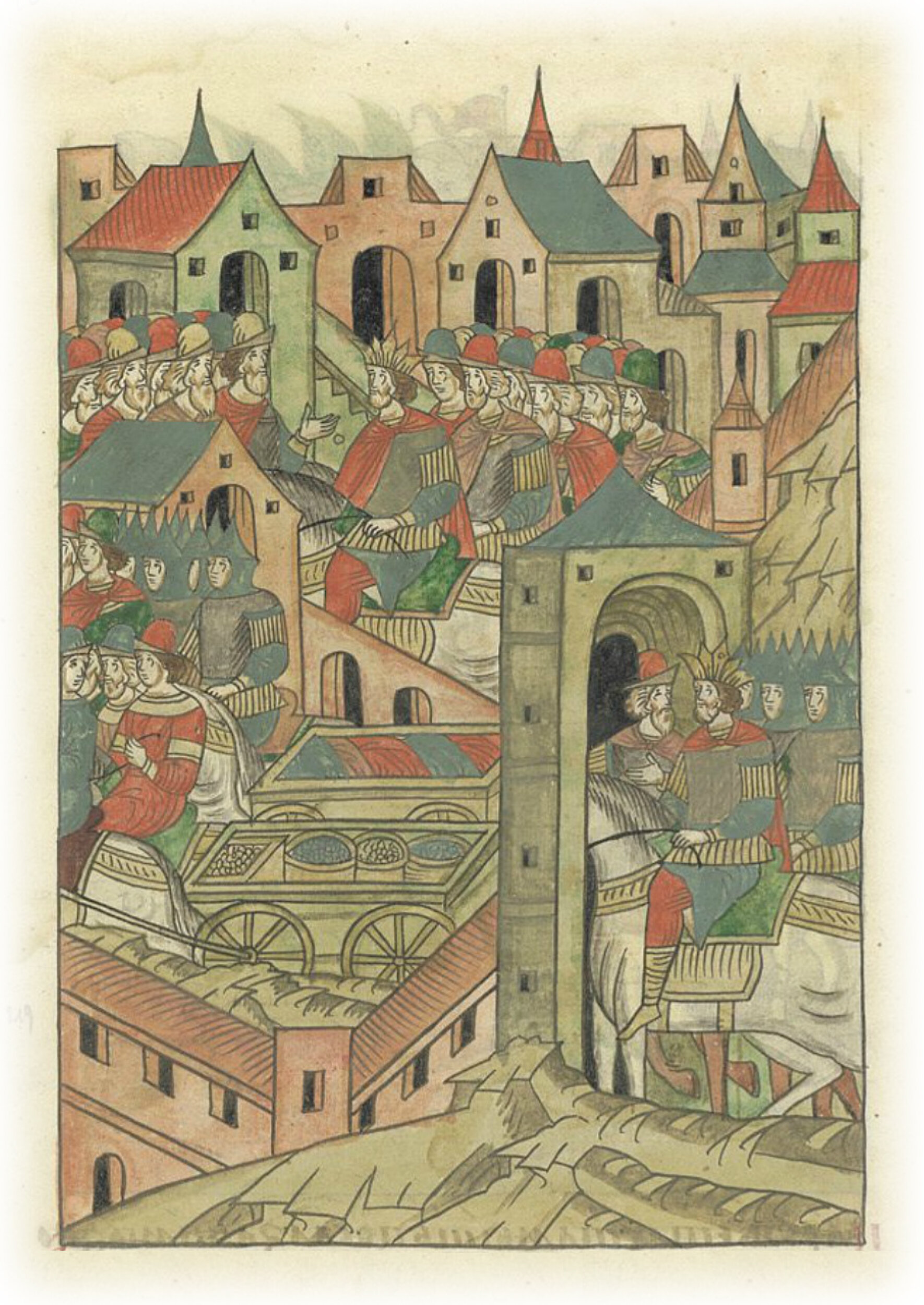 И сослался с кафинцами по договору его с ними о защите, чтобы его приняли для избавления – пока не избавится от гонящих его. И повелели ему, пусть войдет. И вошел Мамай в Кафу с думцами своими, и единомышленниками своими, и со множеством богатства, золота, и серебра, и каменьев, и жемчуга.