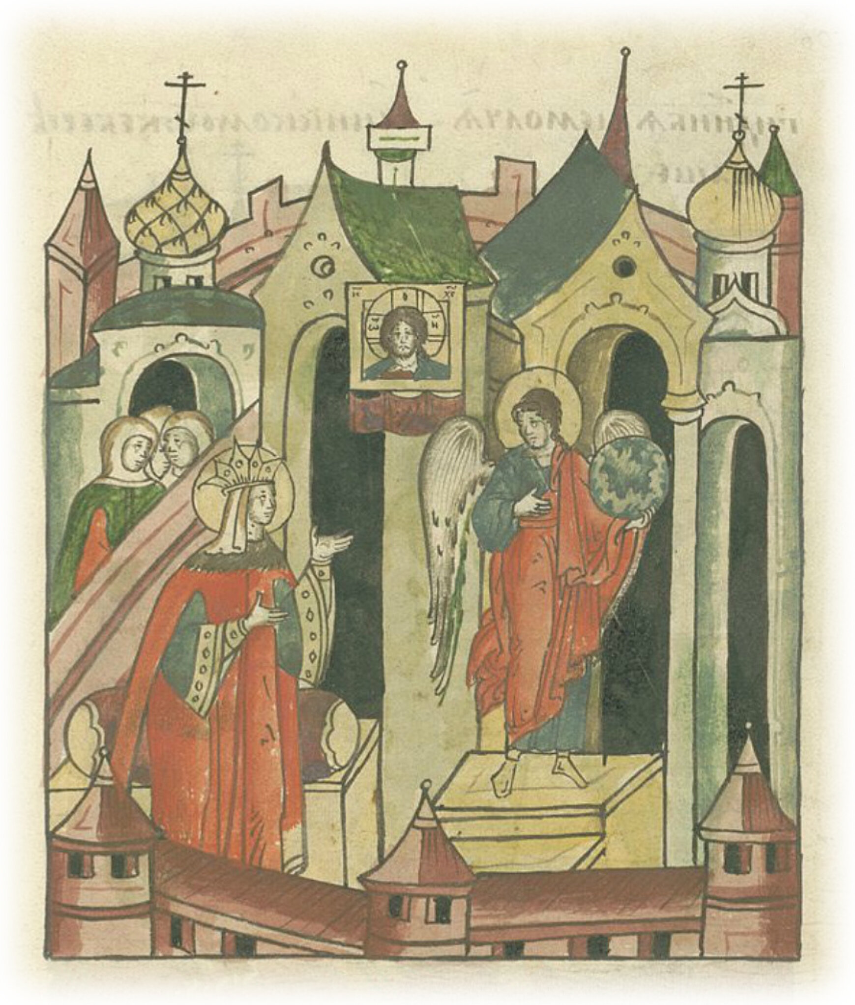 О явлении ангела Господня. И усердно подвизалась княгиня прилежными к Богу мольбами о самой себе, о своих чадах и обо всей державе, Господь же всячески исполнял ее прошения. Однажды ради добродетелей княгини послал к ней Господь своего ангела, возвестившего ей уход из мира. Она же, увидев ангела Божья, не могла выговорить ни одного слова от света, исходящего от него, и много дней провела в молчании, ни с кем не разговаривая.