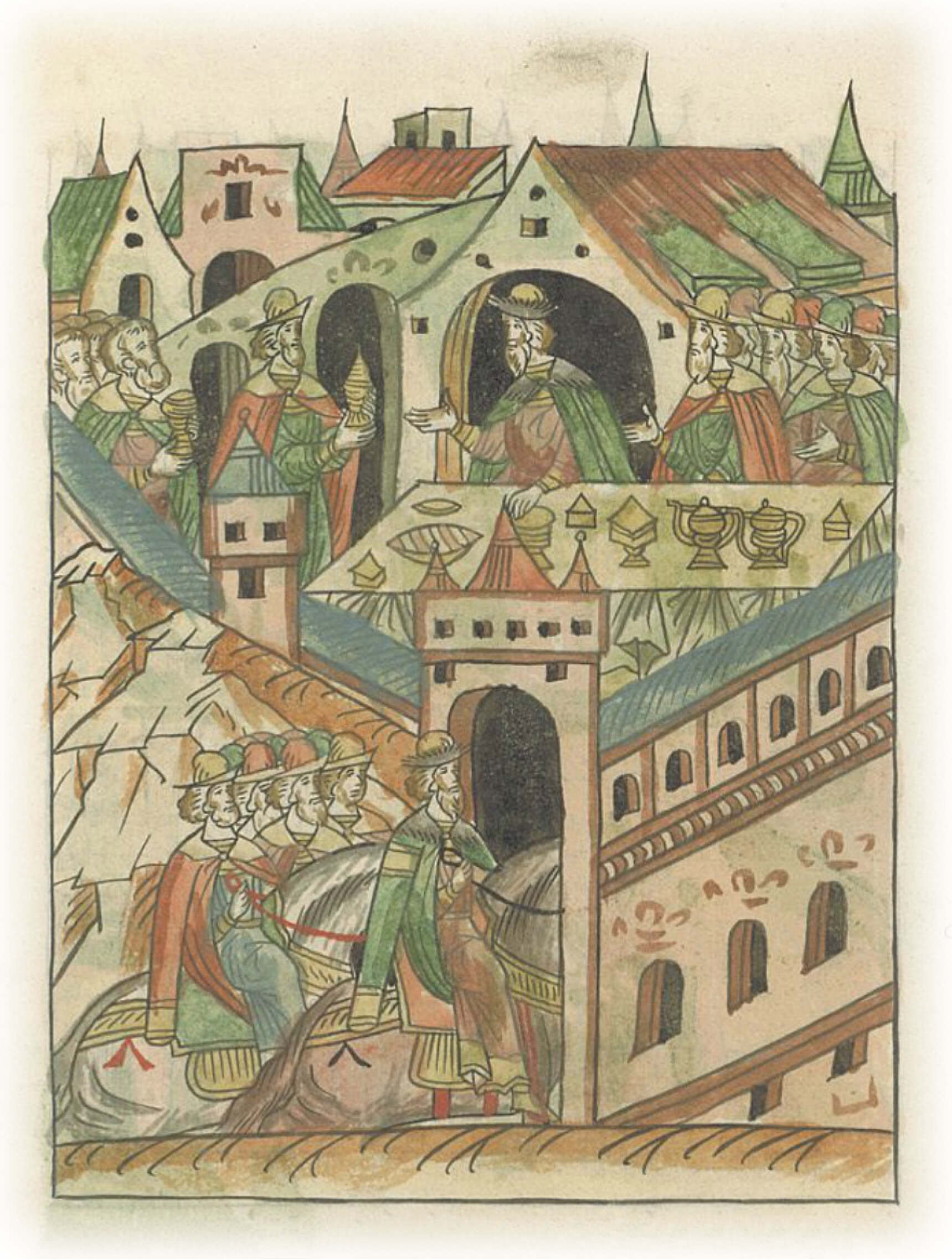 Великий князь Иван Васильевич въезжает на Волок и обедает у своего брата, князя Бориса.
