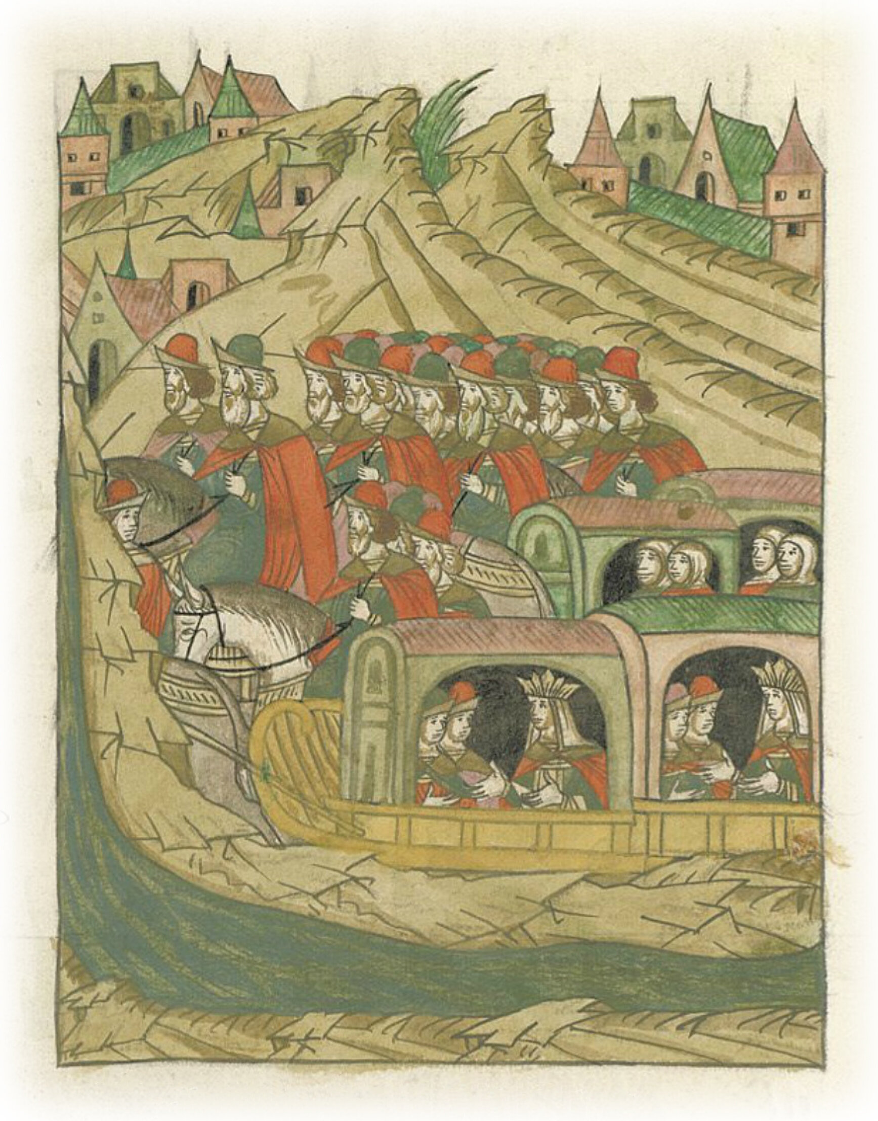 пошли из Ржева с княгинями и с детьми, и бояре их, и дети боярские лучшие с женами и с детьми, и с людьми вверх по Волге к Новгородским волостям.