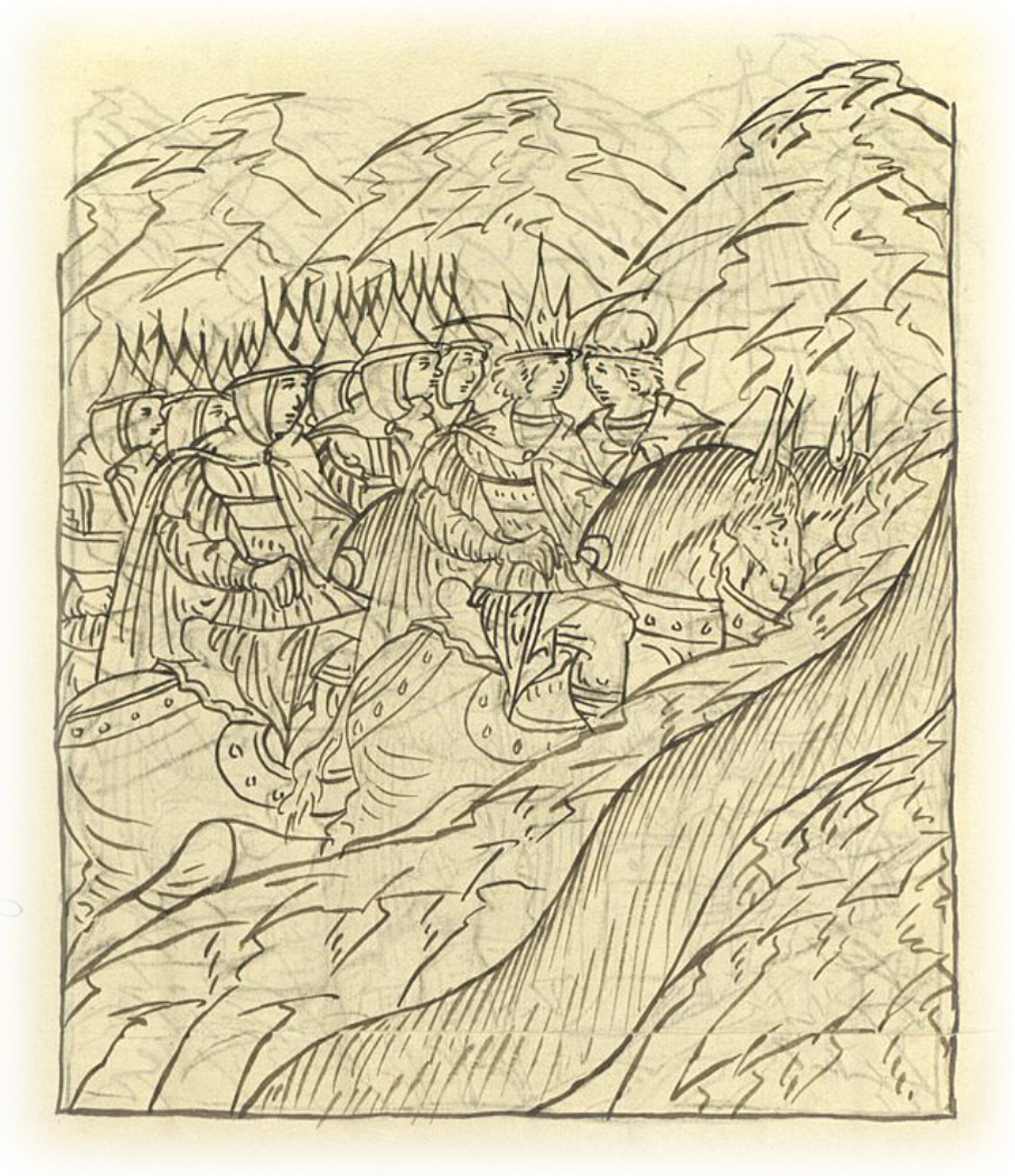 Воеводы царя Ивана Васильевича, разделившись, идут в погоню за царем Емгурчеем.