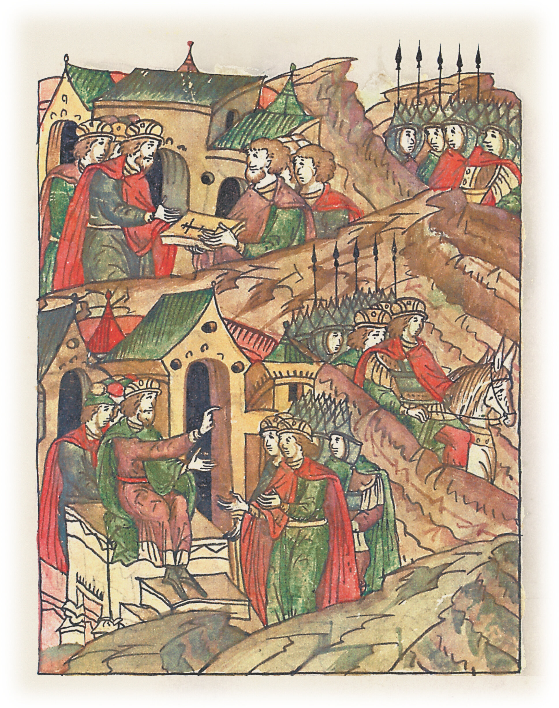 Ругодивские посадники Яким и Захар приезжают в Москву. Воеводы царя Ивана Васильевича Алексей Адашев и Иван Михайлов сообщают им, что государь пожалует их, если сдадут его воеводам помимо Ругодива Вышгород.