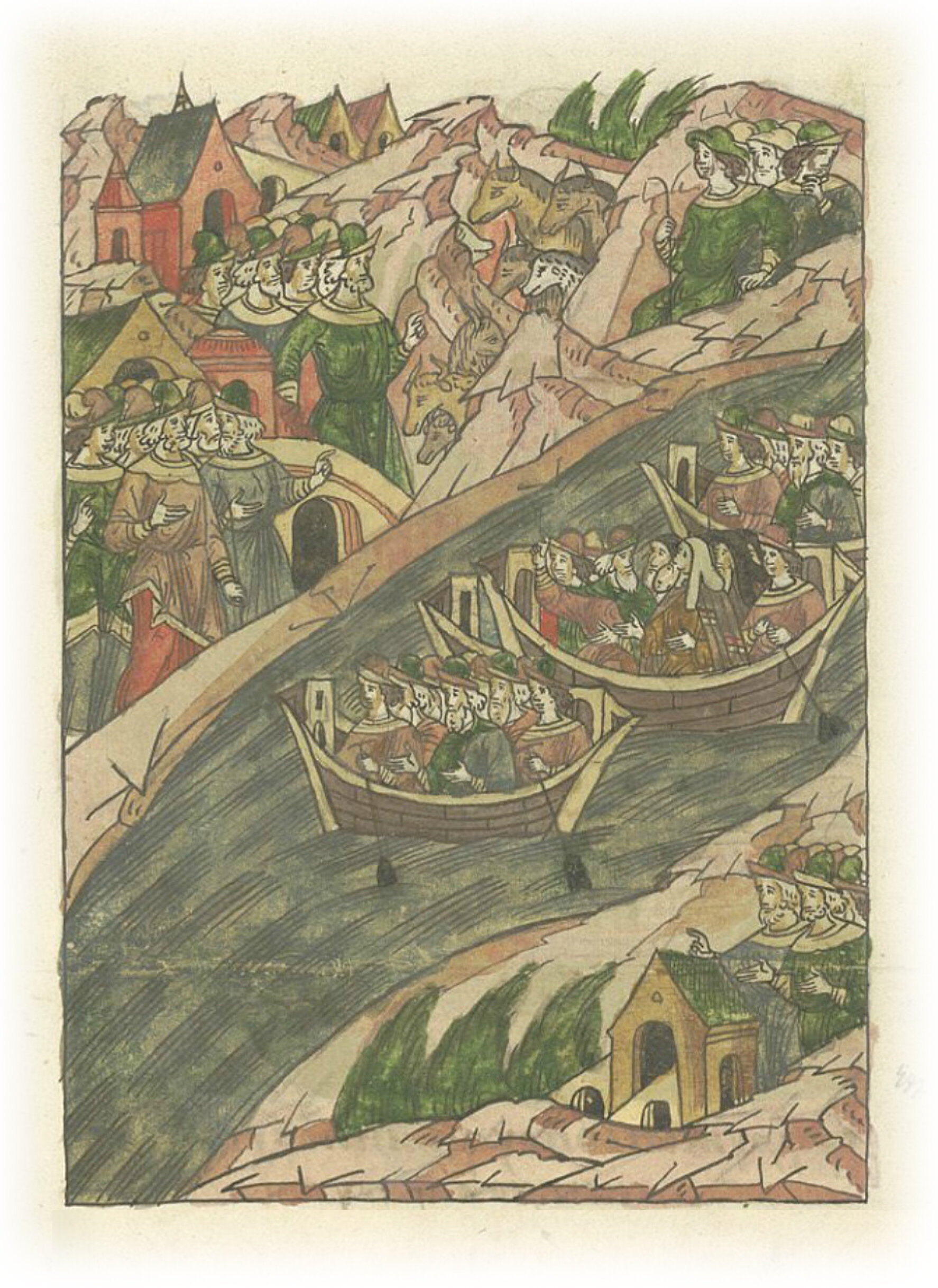 О походе митрополита Пимена в Царьград со Смоленским владыкой Михаилом и Спасским архимандритом Сергием. Путешествие на корабле по реке Дон. Встреча с татарами.