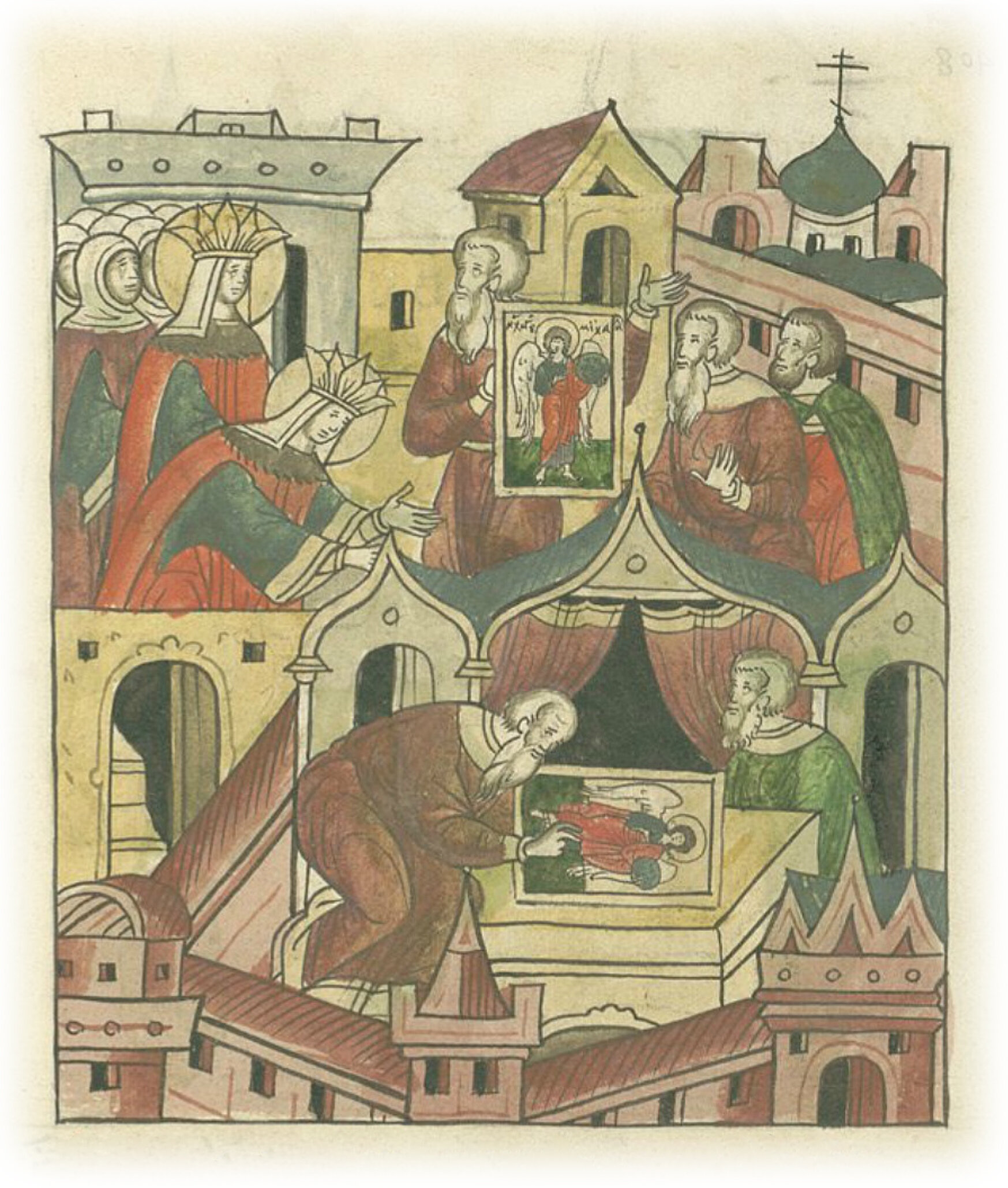 И движением руки приказала написать икону ангела Господня другим образом. Они же написали другую икону ангела Божьего и принесли к ней. Княгиня, увидев икону, вновь поклонилась ей и ничего не сказала.