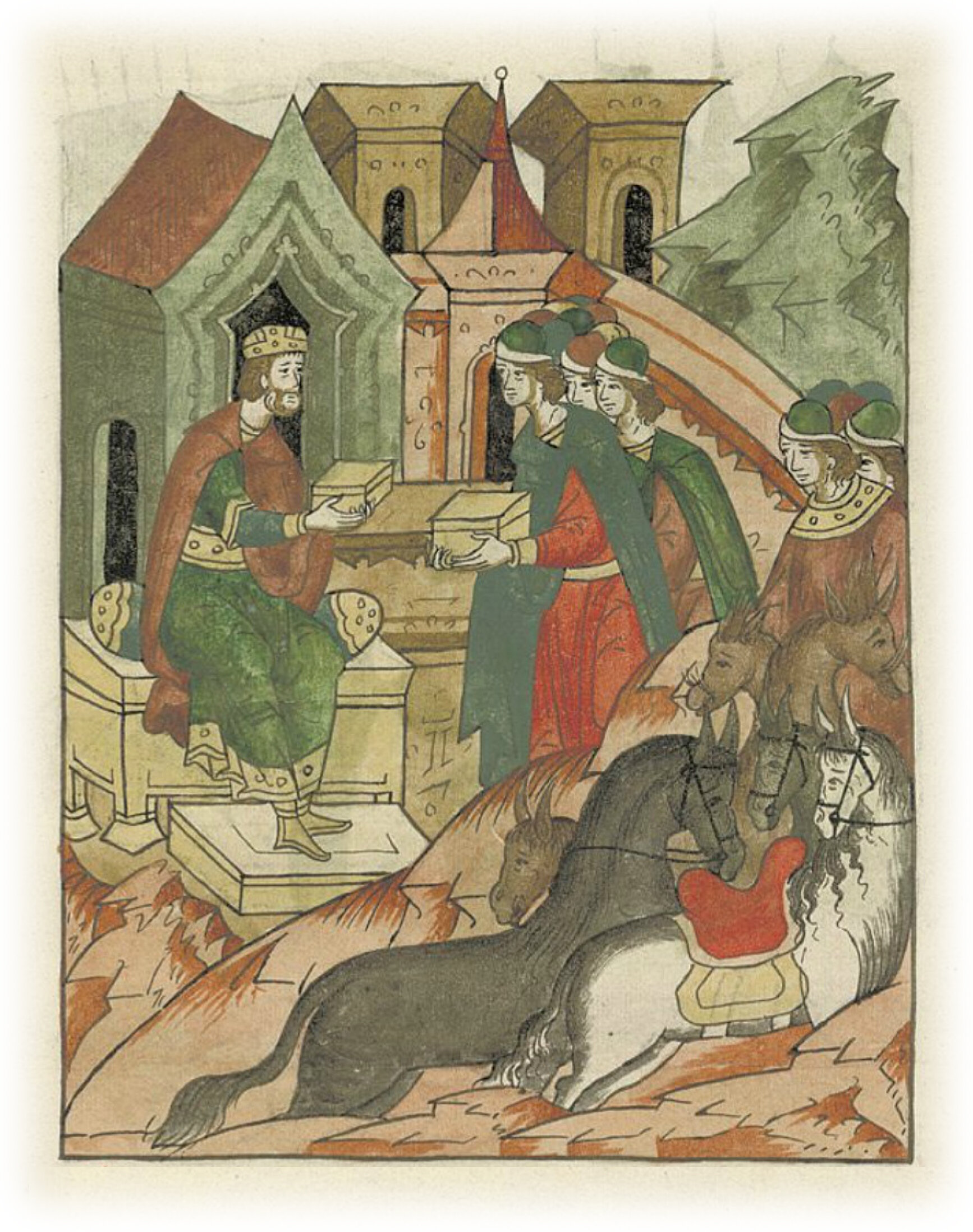 И пришел Котяк к своему зятю князю Мстиславу Мстиславичу Галичскому и принес ему богатые дары: коней, верблюдов, буйволов и многое другое,