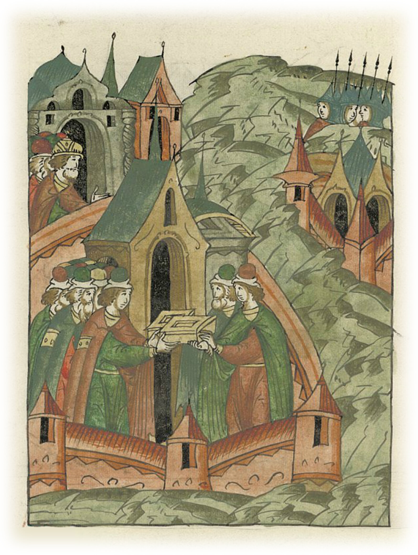 Ругодивские посадники Яким и Захар приезжают в Москву. Воеводы царя Ивана Васильевича Алексей Адашев и Иван Михайлов сообщают им, что государь пожалует их, если сдадут его воеводам помимо Ругодива Вышгород.